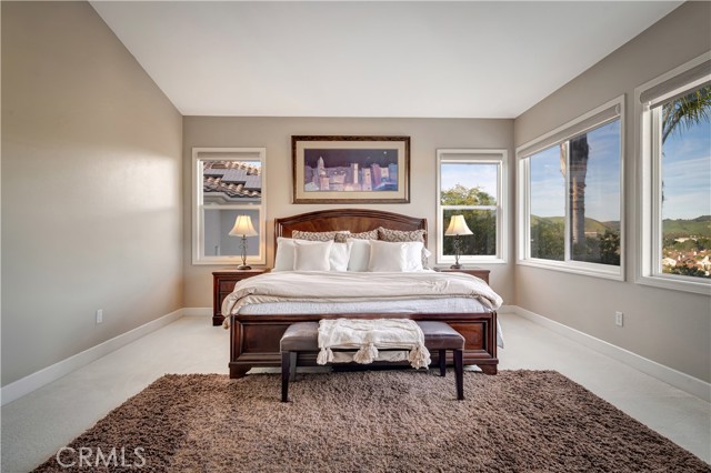This beautiful home combines warmth, elegance, and sweeping views in one of Calabasas’ most desirable locations. Nestled within the exclusive gated community of Calabasas View, this thoughtfully designed 5-bedroom, 4½-bath residence offers approximately 3,400 square feet of light-filled living space, highlighted by impressive 20-foot vaulted ceilings. From the moment you step inside, a welcoming foyer opens to the formal living room, where a cozy fireplace and soaring ceilings create a space that feels both grand and inviting. The beautifully upgraded kitchen, featuring quartzite countertops, flows effortlessly into the family room—perfect for everyday living—while the formal dining room sets the stage for special occasions. The backyard is designed for connection and relaxation, offering breathtaking, unobstructed views of the hills and valley. Whether hosting friends or enjoying a quiet evening, the covered patio and low-maintenance artificial grass area provide the ideal setting for both entertaining and play. A downstairs bedroom with a private full bath offers comfort and flexibility for guests or multi-generational living. Upstairs, a versatile landing creates space for a home office or study nook. The spacious primary suite is a true retreat, complete with its own fireplace, a beautifully upgraded en-suite bath, and a generous walk-in closet. Recent upgrades include a 2019 dual-zone HVAC system, 2024 water heater, 2024 aluminum patio cover, and designer window treatments. Set on a quiet cul-de-sac along a peaceful, tree-lined street, the home is located within the award-winning Las Virgenes Unified School District. Enjoy easy access to the San Fernando Valley or take a scenic 15-minute drive to the beaches of Malibu or Pepperdine University. Surrounded by parks, hiking and biking trails, the home is also just minutes from the 101 Freeway, Erewhon Market, 4 miles to The Commons at Calabasas, and 6.5 miles to Westlake Village Promenade. The Calabasas Community Center gym is within walking distance. With its stunning views, inviting layout, and elevated finishes, this home offers the perfect blend of luxury and everyday comfort— offering the very best of Southern California living.