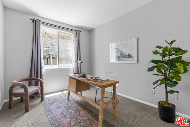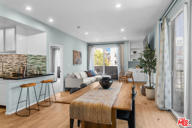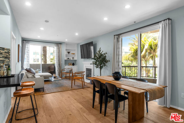 Live a resort lifestyle at this sun-drenched condo in Del Rey Terrace, offering plentiful amenities with low HOA dues - heated pool and spa, fitness center, clubhouse, media room, package lockers, gated parking and code-secured bike storage room. With a prime location in the Marina Arts District and unique position in a private wing of the building, this rare 3-bedroom, 3-bath condo offers the premium combination of exclusivity and accessibility. Enjoy the feeling of safety perched high above the street in a secure building, while experiencing the true home feeling of no shared side walls, windows and light on all four sides of the condo, and private outdoor spaces with pool, front-facing and city views. //From your private entry walkway, step inside and find a home that feels truly special, where thoughtful upgrades and comfort go hand in hand. The kitchen offers upgraded black quartz countertops, under-cabinet and drawer lighting, a breakfast bar, and stainless steel appliances that invite culinary creativity. The open-concept living area welcomes you with the warmth of a fireplace, framed by views of mature green palms and purple jacarandas through expansive sliding glass doors. It's a space equally suited to entertaining or relaxing, with recessed lighting throughout and a 77" OLED TV on a wall-mounted pull-down swivel arm - yours to keep. //The primary suite offers a quiet sanctuary, complete with a walk-in closet and ensuite bath, while the secondary bedroom is just as inviting - boasting its own ensuite, private balcony, and serene pool view. A third bedroom provides the flexibility to serve as a home office or ample space for more family or guests. //The benefits of a 2000s build include effective dual-pane windows and sliding doors, so you can enjoy the breathing room, light and views that a front-facing unit offers, yet also retain the peaceful quiet inside from the bustling activity below. Additional comforts include central AC and heating, in-unit laundry, and plenty of storage throughout. Smart-home touches elevate the everyday: smart light switches, Nest thermostat, a Ring alarm system on every window and door, and an HOA-approved Lockly smart lock with fingerprint access, giving your home an effortless feel of extra comfort, security and protection. //Whatever mode of transportation you prefer, you can be nearly anywhere in minutes - ride the bike path to the beach, hop on a boat to the other side of the marina, or walk to the dine-in movie theater or one of the many bars and restaurants in the immediate neighborhood. There is quick access to the 90 fwy for venturing further, and your two side-by-side parking spots in the gated garage include a dedicated 9KW EV charger. This condo offers a comfortable, happy home with all the tools for an active lifestyle right at your front door.