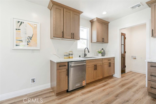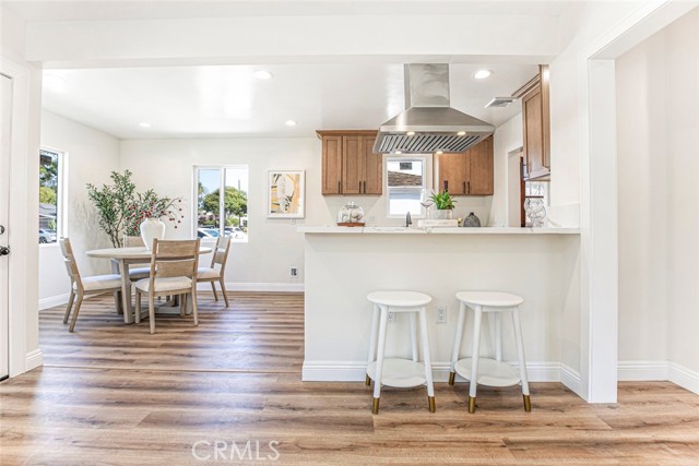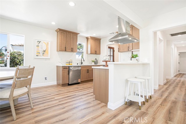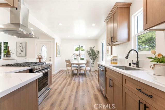 Fully renovated with all city permits, this beautiful single-family home is situated in the highly desirable and quiet residential area west of Culver City—just one mile from the center of Marina del Rey! Offering the ideal blend of modern urban living and coastal convenience, this property places you close to shopping, dining, parks, and everything this vibrant city has to offer. Inside, a bright front living room welcomes you with large dual-pane windows, recessed lighting, and laminate plank flooring that flows throughout. The open-concept dining area leads into a stunning kitchen featuring warm wood shaker cabinets, quartz countertops, and stainless steel appliances with designer hood and a brand-new dishwasher. The home offers three comfortable bedrooms, each with ample closet space and recessed lighting. Both bathrooms are tastefully updated equipped with modern bidet-style smart toilets, including sleek vanities, LED-lit mirrors, matte black fixtures, and a modern tub-shower combo with marble-style tile. A spacious, separate family room at the rear of the home showcases a wood-beamed ceiling, brick fireplace, and sliding glass doors on both sides—one opening to the detached 2-car garage, the other to a private backyard patio—making it perfect for indoor-outdoor entertaining. The floor plan provides excellent separation between living areas and bedrooms, while a dedicated laundry area adds everyday convenience. Outside, enjoy a freshly landscaped front yard, gated long driveway, and detached two-car garage. Move-in ready and located in one of the most sought-after Westside neighborhoods, this home offers style, comfort, and an unbeatable location.