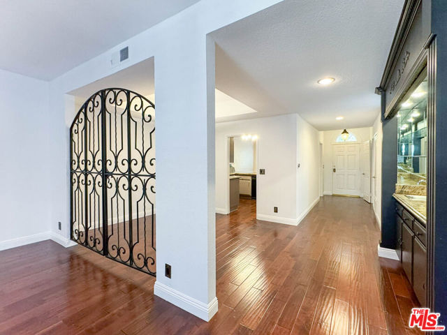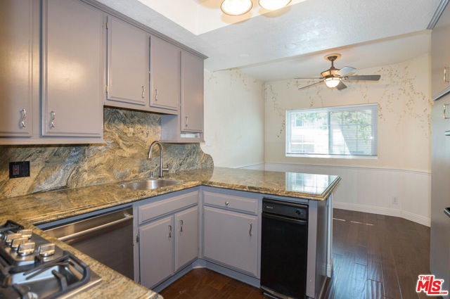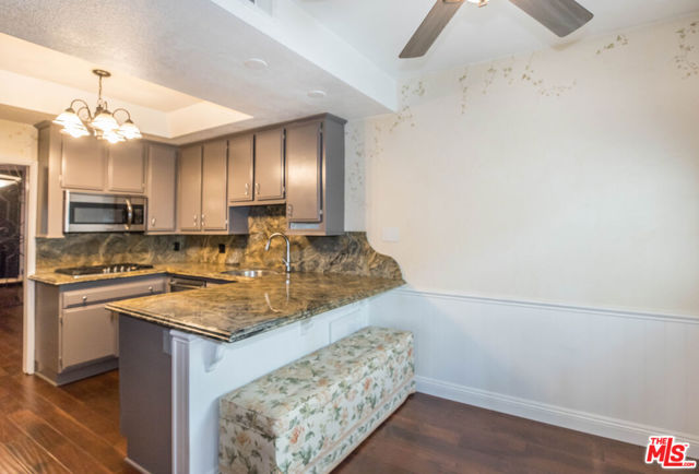 Welcome to this generously sized, beautifully remodeled single-level condo, offering comfort, style, and convenience in a gated complex with top-tier amenities. Formal entryway that leads to a bright and functional kitchen featuring granite countertops, stainless steel appliances, including a refrigerator, stove, dishwasher, and microwave, plus a breakfast bar and casual dining area. A decorative iron gate elegantly separates the formal dining room, which includes a built-in bar and flows seamlessly into the expansive living room. Enjoy cozy evenings by the decorative fireplace or relax on the private balcony. A hallway with two closets, one equipped with a washer and dryer, connects to the spacious bedrooms. The guest bathroom includes a shower/tub combo and additional storage. The luxurious primary suite boasts soaring ceilings, a ceiling fan, custom built-ins, three walk-in closets, and a spa-inspired en suite bathroom with a modern vanity and light-up mirror. The generously sized second bedroom features mirrored closet doors, large windows, and a ceiling fan. Residents enjoy access to a secure building with resort-style amenities, including a pool, sauna, and gym. The unit includes two side-by-side garage parking spaces. Tenant pays for all utilities except water, trash, and sewer. No pets allowed.