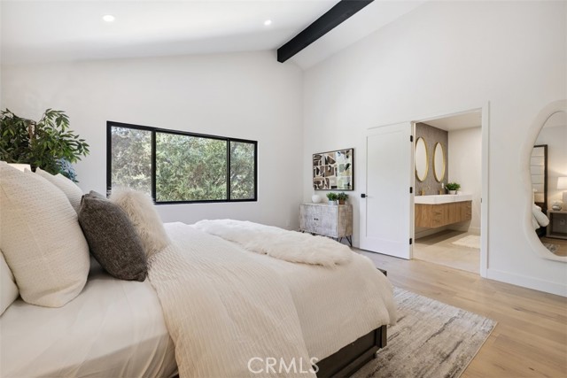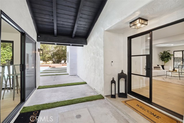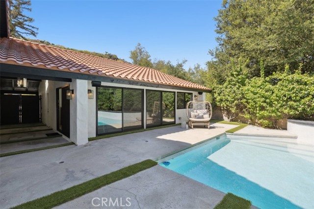 Incomparable Luxury Lifestyle & Privacy in the desirable Park Streets of Calabasas. Appreciate elevated living in this remarkable private & gated 4-bedroom, 3.5 bathroom redefined home PLUS separate ADU with it's own full bath. Meticulously updated this open, naturally lit smart residence is a sanctuary of style, comfort, & natural beauty. From the moment you enter the double door glass entry you'll be captivated by the formal living room with elevated ceilings, natural light from new windows & skylights, & the prominent fireplace. Perfect flow between entertaining in the lounge & enjoying the grandness of the living room. A large hallway offers easy flow from backyard to living room. Stylish dining room with modern lighting is located just off the state-of-the-art culinary kitchen with top end smart appliances & a considerable island with seating, plenty of storage, cabinets & counter space. This extra sized room also boast dining area situated between sliding doors to the pool & the brand-new top of the line BBQ. Up the glass staircase with chic chandelier, you'll find 4 generous bedrooms. Two serviced by a beautiful, remodeled bath & another with it's very own modernized bathroom. The primary with it's tastefully redesigned bathroom & custom closet that offers elegance & style with the large stunning sink for two & the extra-large shower. The outdoors is a welcoming oasis featuring a glistening pool, multiple lounge & dining areas to enjoy intimate gathering or large parties. The detached pool house with full bathroom, closet, & wet bar is perfect for live in guests/ office/ studio/ gym/ possible ADU with it's own HVAC The options are endless. Home offers secure gated entry, solar, new roof, & drought tolerant planting. All this and a three-car garage with new doors, epoxied floors, & storage. Too many upgrades to mention. This is more than a home, it's a lifestyle of beauty, comfort, & privacy located in walking distance to the Calabasas Lake & its trails, summer concerts, & convenient location close to the Commons & it's magnitude of dining & shopping opportunities.