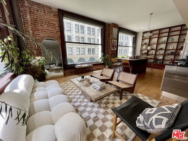 Experience authentic Downtown living in this stunning corner Live/Work loft at the iconic Rowan Lofts. This beautifully restored historic residence features a desirable "L"-shaped layout that offers incredible flexibility for furniture placement, entertaining, or creating distinct living and work zones. Expansive industrial windows flood the space with natural light, highlighting the soaring ceilings and exposed brick walls that add warmth, charm, and architectural character. The thoughtfully upgraded interior includes a custom kitchen island perfect for hosting, built-in shelving for style and function, and a spacious custom walk-in closet designed for modern living. Located on vibrant Spring Street, you're just steps from some of DTLA's best restaurants, cafes, and boutiques. Residents enjoy premium amenities including a 24-hour doorman, barbecue area, and relaxing hot/cold spa and residents lounge. Parking available behind the building for a fee.