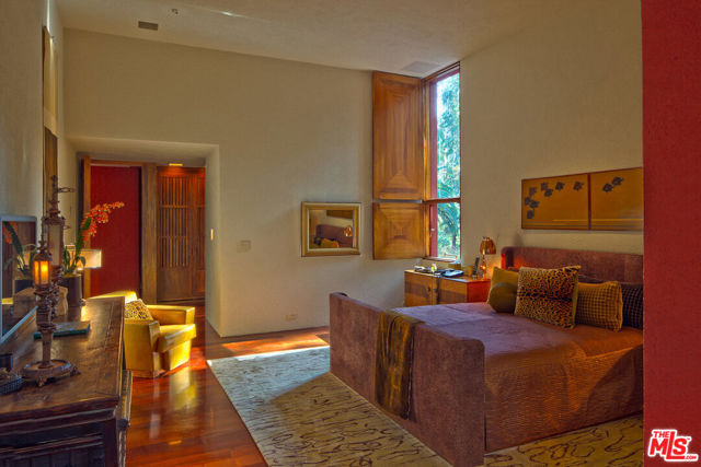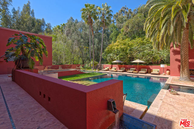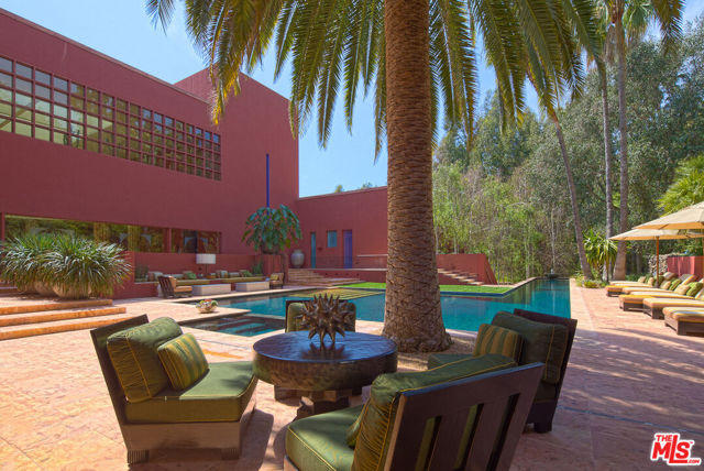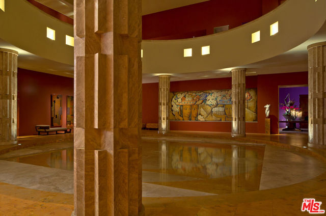 *Property is under contract, do NOT contact owners* Nestled on 4.5+ acres of lush gardens in the guard-gated enclave of Brentwood Circle, this architectural masterpiece by Ricardo Legorreta offers true paradise with seamless indoor-outdoor living throughout. Private compound showcasing a large motor court, reflection pool with travertine columns and stunning atrium entrance. Multiple living rooms with high-ceilings, open formal dining room and gourmet kitchen with top-of-the-line appliances. Ideal for entertaining with large flat lawns, pool/spa, endless decks and outdoor heated dining. Dual primary suites with den, walk-in closets & marble bathrooms and 3 additional en suite bedrooms. Amenities include a library, office, fitness center, wet/dry sauna and one-of-a-kind movie theater.