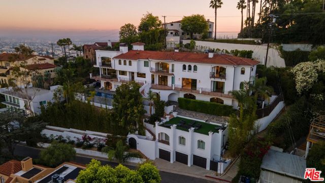 Welcome to "Villa De Bonvue", a masterfully renovated Mediterranean estate perched on a promontory in the prestigious Los Feliz Hills offering jaw-dropping panoramic views from the lush canyons to the glittering skyline of DTLA. Set on a rare street-to-street lot with seven car garage and gated motor court, this architectural gem captures commanding vistas from nearly every room, enhanced by full-length balconies and a rooftop deck designed to frame the city's most iconic landscapes. Every inch of this residence has been thoughtfully curated with luxury in mind featuring white honed travertine, European oak flooring, Italian-imported Bonotti marble, Calacatta Gold countertops, and custom oak and Zebrawood cabinetry. The primary suite is a showstopper with wraparound views, dual spa-inspired bathrooms, a soaking tub, steam and horizontal showers, and boutique-style closets. Unmatched amenities include a movie theater, bowling alley, game room, fitness center, wellness studio, salon, multiple kitchens including a chef's kitchen, and a resort-style infinity pool and spa. A detached guest house adds versatility for hosting or multigenerational living. Within close proximity to Netflix HQ, Griffith Park, The Greek Theatre, and all the best dining, culture, and nightlife in Los Feliz and Hollywood. At only $750 a foot, this exceptional compound is arguably the best value in all of the Los Feliz Hills for a home of this caliber. Truly a unbeatable opportunity for the most discerning of buyers.
