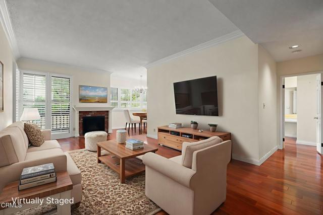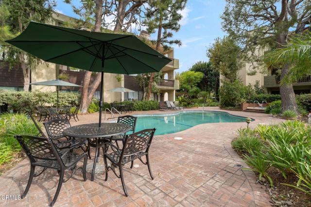 This spacious two-bedroom, two-bathroom condo is located in the heart of Pasadena and is set within a well- maintained complex that features a wonderful courtyard with lush landscaping and incredible amenities. Designed for comfort and style, the home has a great floorplan and features hardwood floors, high ceilings, crown molding, and plantation shutters throughout. The bright and spacious living room has a wet bar and a decorative fireplace. It opens to a large private patio that overlooks the courtyard, featuring a sparkling pool and mature gardens--the perfect space for relaxing or entertaining. The generous dining area sits just off the living room and connects seamlessly to the kitchen. The kitchen features abundant cabinet space, classic terracotta tile flooring, and recessed lighting. The primary suite has a large closet and a vanity area as well as an ensuite bathroom with a glass shower and separate tub. The second bedroom has sliding glass doors with plantation shutters and offers direct access to the patio. With a thoughtful layout, which includes an in-unit laundry room, this condo blends everyday conveniences with a resort-like atmosphere. This community also offers a private storage room, 2 side-by-side parking spaces in a subterranean parking garage, a pool, spa, fitness center and beautifully landscaped grounds. HOA dues cover landscaping, water, trash, exterior building insurance, an earthquake insurance policy and service for the pool, spa, security gates and fitness center. The condo is just minutes from shopping and dining in places like Old Town Pasadena, The Paseo Colorado, the Playhouse District and the South Lake shopping district. Don't miss the chance to enjoy the Pasadena lifestyle at its best. Welcome home!
