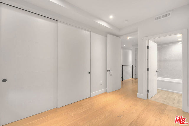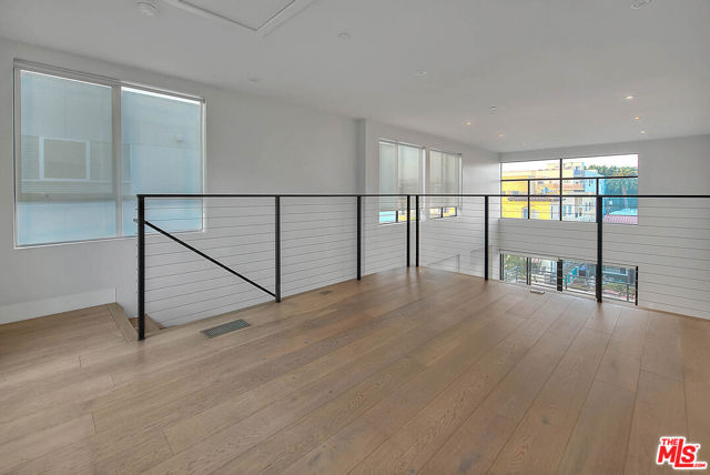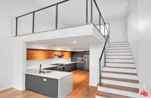 Nestled just moments from Hancock Park, this striking architectural single-family residence offers the perfect blend of design, comfort, and location. Built in 2018 and impeccably maintained, showcasing soaring 17-foot ceilings, exceptional natural light, and curated high-end finishes throughout. The imported Leicht kitchen anchors the expansive main level, featuring a sleek, modern design with a generous bar area ideal for entertaining. The open-concept floor plan flows effortlessly from the dramatic living room to an upper loft/flex space, creating a dynamic yet functional layout. Enjoy seamless indoor-outdoor living with dual terraces offering both southern and northern exposures, views of the downtown skyline and the Hollywood Hills. Floor-to-ceiling sliders flood the interior with light and provide easy access to private outdoor spaces. The luxurious owner's suite features a spacious walk-in closet and a spa-inspired bath complete with an oversized shower. Additional conveniences include a private two-car garage with direct entry and a dumbwaiter for effortlessly transporting groceries to the kitchen level. Situated within an exclusive, gated enclave of only four homes, this rare offering combines privacy, modern elegance, and an unbeatable location. A true gem in the heart of the city.