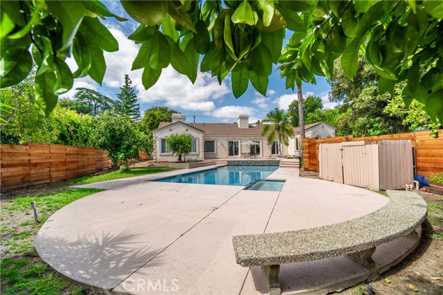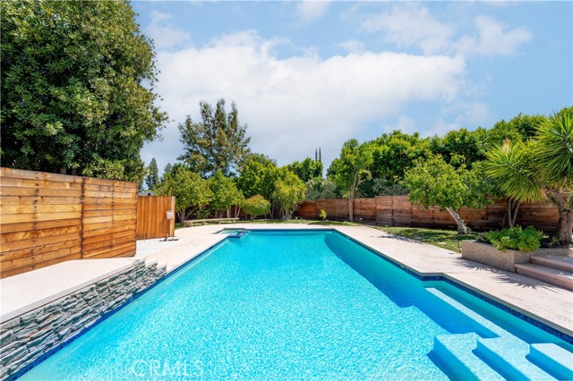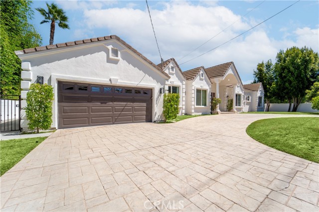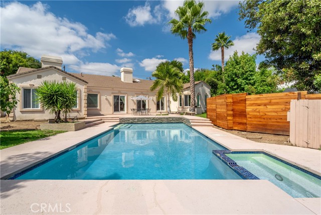 Exquisite one level home in quit street. South of Ventura Blvd, circular drive way, double door opens to formal entry, light, bright and open floor plan, new laminate flooring with an gorgeous fire place dividing the living and family room, three sliding doors opening to resort-style entertaining back yard with huge pool, Jacuzzi and fire pit w/wrap around sitting areas. Updated kitchen with granite counter top and large breakfast nook. The master suite features an additional fireplace and two walking closet, in addition built-outs and a spa-style bath tub. Each bedroom with private full bathroom. Wonderful home in one of Tarzana's prime street and close to Ventura Blvd.
