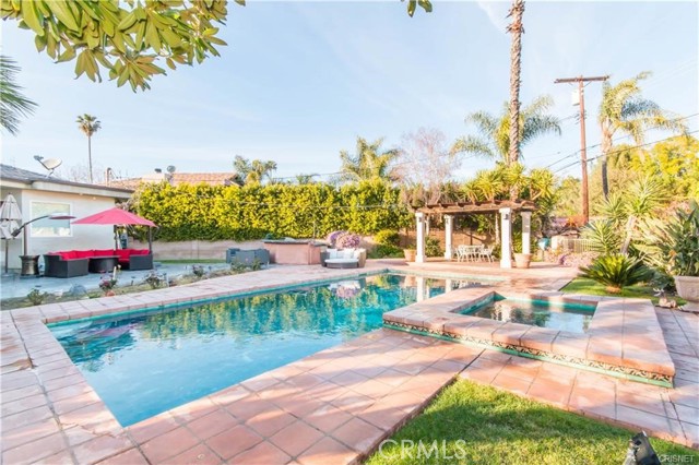 Welcome to this stunning light and bright newer construction home located in the highly sought after South of the Blvd Woodland Hills Community. This home features a main house PLUS a huge new build detached guest house with an additional 2 bedrooms and 2 bathrooms. Set on huge private resort like grounds, this amazing property is a relaxing oasis perfect for family gatherings and making memories. Featuring all things luxury, this home has it all! Some of the wonderful amenities of this home incude: high ceilings, designer fixtures, high end Thermador appliances, open and spacious floor plan, living room with a wood burning fireplace, sparkling pool and jacuzzi, built in BBQ, and much much more. Conveniently located next to The Village, Topanga Mall, the shops and restaurants of Ventura, parks, schools, and just a short ride to the beach.