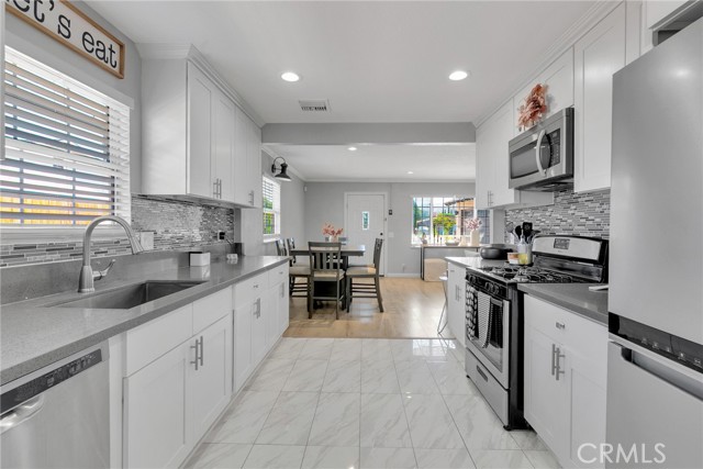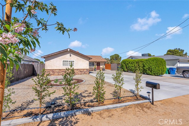 Nestled in the tranquil community of Quartz Hill, this charming residence offers a harmonious blend of comfort and modern style. The home boasts three inviting bedrooms and two well-appointed bathrooms within a thoughtfully designed 1,123-square-foot layout. As you enter, you're greeted by an open-concept living area featuring a cozy fireplace framed by a striking gray brick accent wall, setting a warm and welcoming tone. The adjacent kitchen is a culinary haven, showcasing pristine white cabinetry, gleaming stainless steel appliances, and elegant speckled gray granite countertops that complement the marble white tile flooring. A convenient pantry and laundry room are seamlessly integrated, enhancing functionality. Each bedroom is a peaceful retreat, complete with ceiling fans and sliding door closets, ensuring comfort throughout the seasons. The bathrooms exude contemporary flair, with gray vanities, tub-and-shower combinations, and modern square mirrors adding a touch of sophistication. Situated on a generous 0.40-acre lot, the expansive backyard presents endless possibilities for outdoor living, gardening, or creating your personal oasis. Additional highlights include RV access, central heating and cooling, and an attached two-car garage. This residence is more than just a home; it's a sanctuary where modern amenities meet timeless appeal.