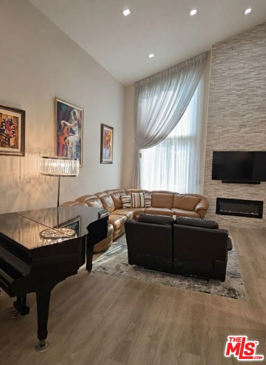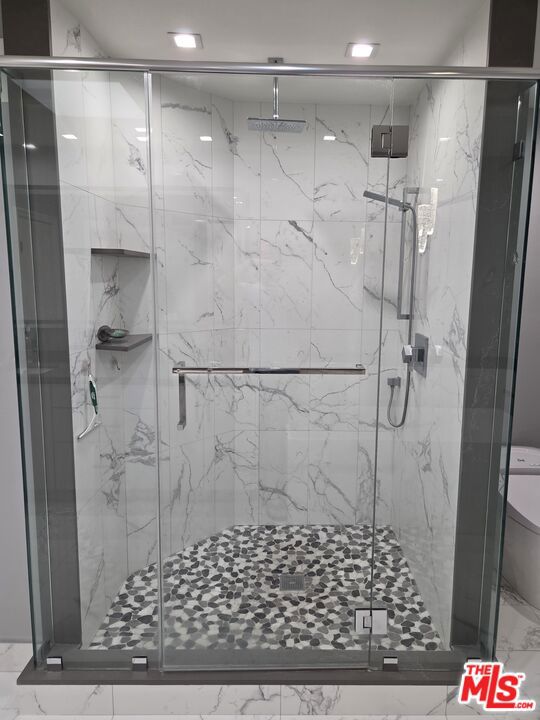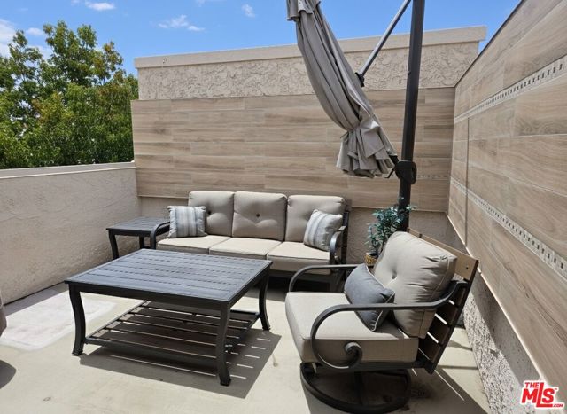 Welcome to this extraordinary penthouse residence where meticulous craftsmanship meets contemporary elegance. Spanning 2,100 square feet of thoughtfully reimagined space, this completely remodeled condo represents the pinnacle of Encino living. Upon entry, you're immediately captivated by the soaring cathedral ceilings in the living room, creating an impressive sense of volume and openness. The great room showcases designer lighting fixtures, including a stunning crystal chandelier, and features a floor-to-ceiling stone accent wall housing a sleek linear fireplace. Elegant drapery frames floor-to-ceiling windows that flood the space with natural light. The home's crown jewel is the expansive primary suite, a true sanctuary offering generous proportions and direct access to your private walk-in closet featuring custom built-in shelving with warm wood backing for a high-end boutique feel. The spa-inspired primary bathroom is nothing short of spectacular, with its modern gray palette, marble-look porcelain tile, freestanding soaking tub, frameless glass shower enclosure, and dual vanities with quartz countertops. The kitchen balances style and functionality with white shaker cabinetry, stainless steel appliances including double ovens, granite countertops, and abundant storage including glass-front display cabinets. A secondary bedroom offers serene tones and classic furnishings, while an additional contemporary bathroom features backlit mirrors and clean lines. Step outside to your private rooftop deck an entertainer's dream with wood-look porcelain tile accent walls providing both privacy and modern aesthetic appeal. This expansive outdoor retreat offers the perfect setting for al fresco dining and relaxation under the Southern California sky. Practical luxuries include a dedicated laundry room and convenient side-by-side parking. The prestigious community offers resort-style amenities: two sparkling pools, two spas, sauna, recreation room with pool table, and secure gated entry with controlled access. This penthouse is available unfurnished or as a rare turnkey opportunity fully furnished with designer pieces, complete cookware, dining ware, electronics, and artwork as photographed. Simply bring your suitcase and begin living the elevated lifestyle you deserve. Experience penthouse living where every detail has been carefully curated for the discerning resident seeking both luxury and convenience in one of the Valley's most desirable locations.