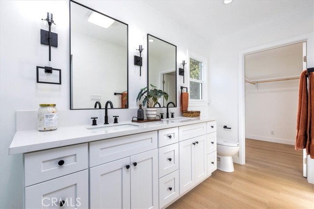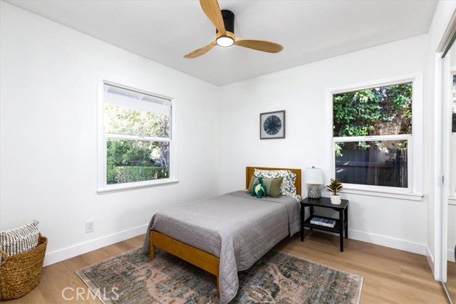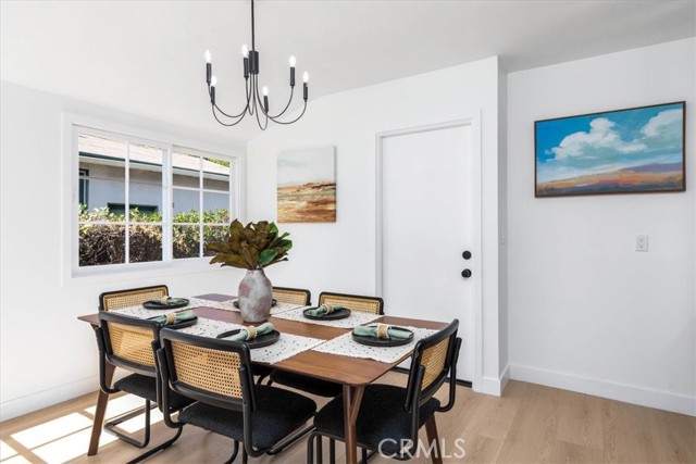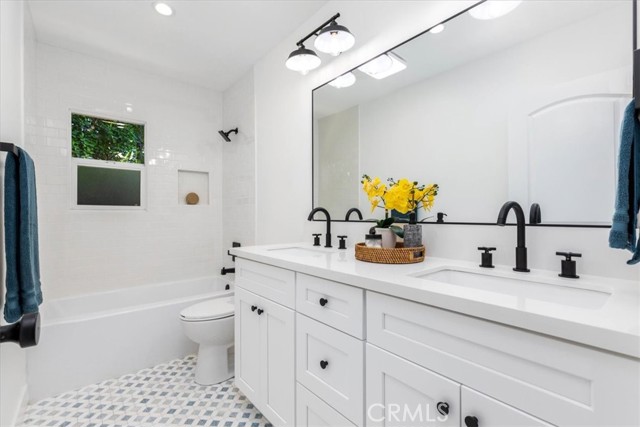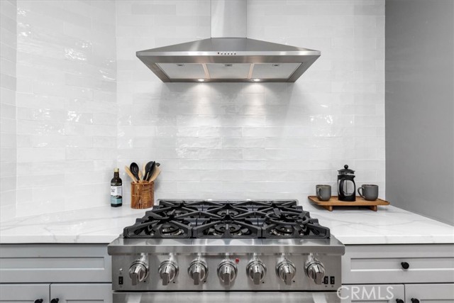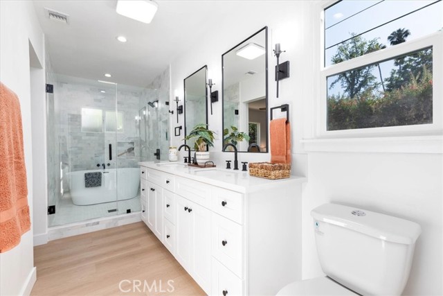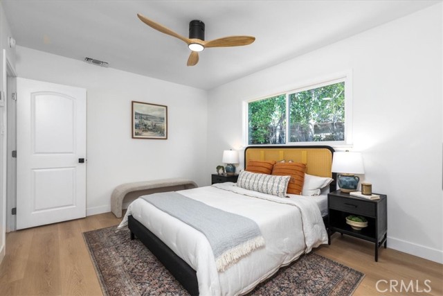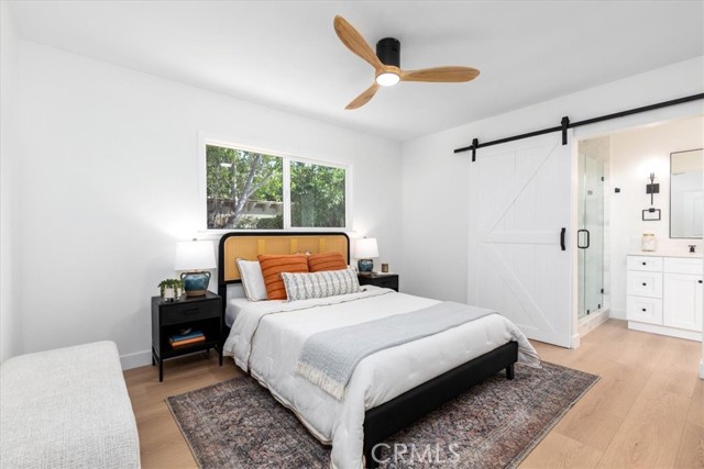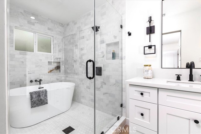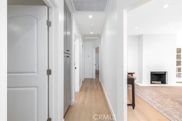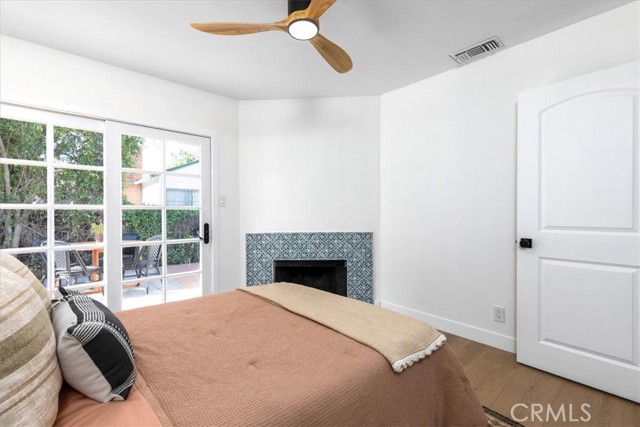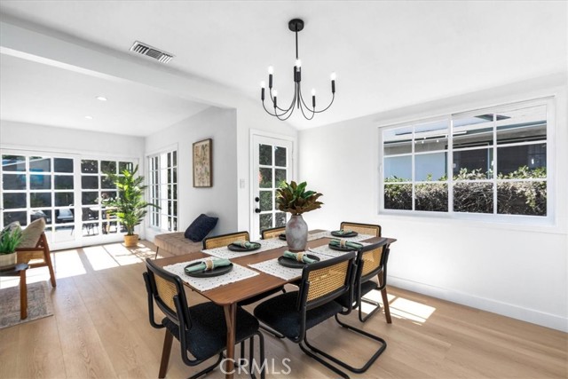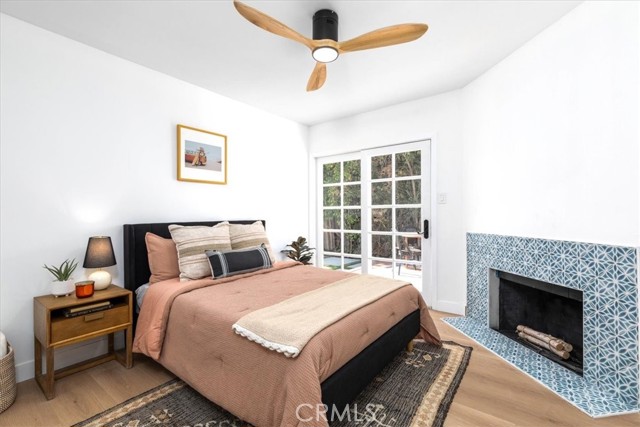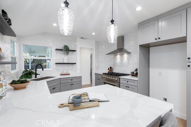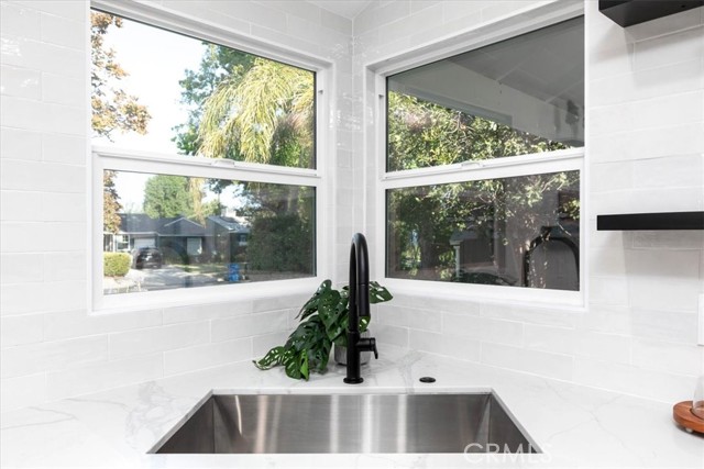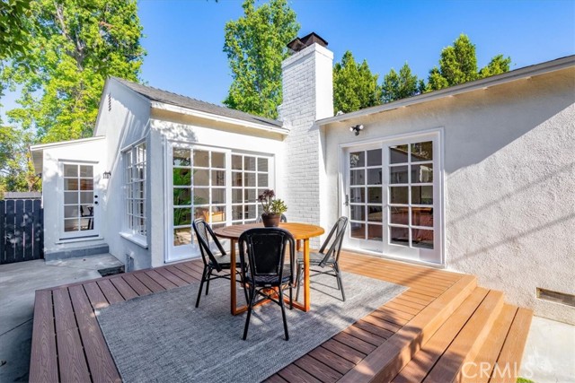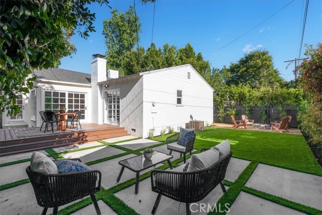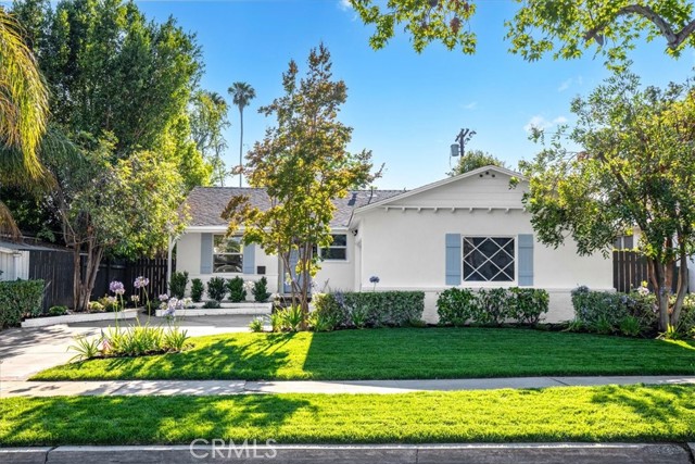 Tucked away on a charming, picturesque tree-lined street in a highly sought-after neighborhood of Sherman Oaks with award winning schools, this meticulously remodeled single-story home offers a perfect blend of modern elegance and serene living. From the moment you step through the front door, you'll be captivated. The design seamlessly integrates a fully equipped kitchen into the bright and airy dining area, and living room accentuated by a tastefully designed floor to ceiling marble tile fireplace. The kitchen boasts top-of-the-line Stainless style appliances, quartz countertops with a breakfast bar, ample soft-closing cabinetry, and a large single basin sink adorned with a striking tile backsplash and floating shelves further enhance the kitchen's appeal. The sliding door off the living room effortlessly merges indoor and outdoor living spaces. Luxurious vinyl wood floors and recessed lighting run throughout the home. The well-appointed primary bedroom features an en-suite bathroom with a free-standing soaking tub and walk-in shower, dual sink vanity and a built-in bench. One of the secondary bedrooms which could be used as an office or den has its own fireplace and elegant French doors that open onto an expansive deck. Step outside to discover a breathtaking backyard designed for both relaxation and entertainment. An oversized wood patio sets the stage for al-fresco dining and gatherings, complete with a fire pit, The property is enveloped in lush greenery, surrounded by mature trees, a spacious lawn area, and serene landscaping, all enhanced by a drip system and sprinklers. Additional features of this home include a new HVAC system with new ducting and a new water heater. The spacious 2-car garage is attached to the home with convenient access into the home. Conveniently located near the highly regarded Kester Elementary School which was recently designated a national Blue Ribbon School, this home also provides easy access to LA's Westside, Beverly Hills, Sherman Oaks Galleria, the serene Japanese garden, boutique shopping, and an array of fine dining options along Ventura Boulevard.