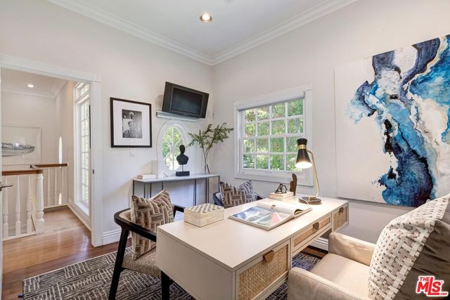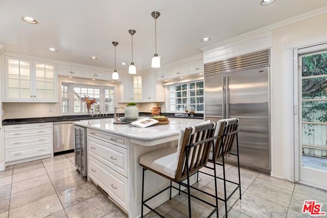 Situated on totally flat lot on one of Little Holmby's most coveted streets, this is the remodeled Traditional home everyone has been yearning for. The house, built is 1931, has been extensively remodeled and updated with newer system buts retains all the cherished original detail work of crown moldings, warm hardwood floors, wainscoting, chair rails and numerous French doors throughout the house. It boasts a classic floor plan with a large formal living room with stately fireplace, inviting formal dining room with bay windows, gracious den/office with wet bar and large convivial family room opening to breakfast room and kitchen. The spacious gourmet kitchen is designed for the most seasoned or aspiring chefs featuring marble counters, high-end stainless appliances, large pantry and large center island. All four bedrooms, each with its own ensuite bath, are upstairs including a palatial primary suite boasting a large sitting area, glorious fireplace, French doors opening to a balcony overlooking the rear garden, generous dual closets and a sumptuous step-down marble bath with separate soaking tub and shower. The rear of the house opens to a private garden with mature landscaping featuring brick patio, grassy area and spa. Most importantly the yard also has an unheard of 525 SF of covered living area creating the perfect space to enjoy the quintessential outdoor California lifestyle of year-around outdoor parties, football/sports viewing events and alfresco dining under the stars. In addition, the house has a large 558 SF ADU featuring sitting area bedroom and spacious bath befitting even the pickiest of house guests. Coupled with its classic and modern features, the home is mere moments from the award-winning Warner Avenue elementary School, relaxing atmosphere of Holmby Park, the world-class shopping at Westfield Century City, the glamour of Beverly Hills, and the cultural offerings of UCLA and Westwood. This is a great opportunity to own one a move in ready house on one of the most prestigious streets in the neighborhood.