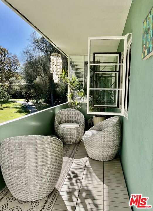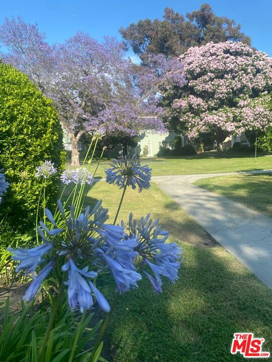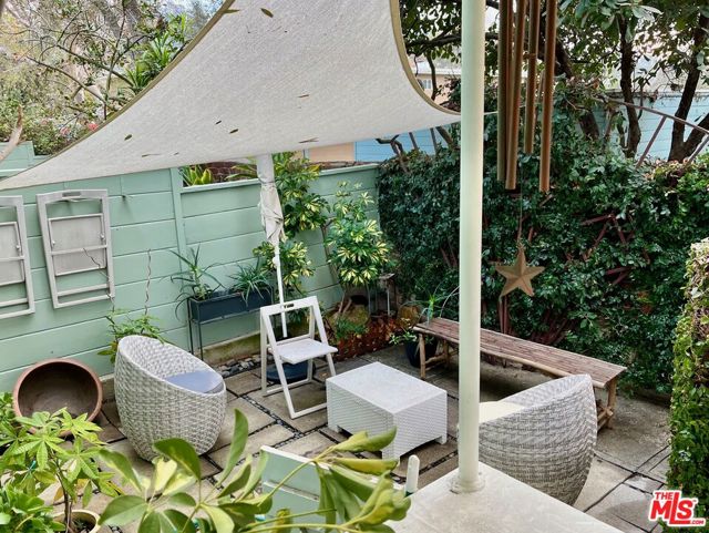 Located within the iconic Village Green, this beautifully situated corner townhome offers the rare opportunity to live in one of Los Angeles' most celebrated residential communities. Designed in 1942 by renowned architect Reginald D. Johnson, Village Green spans 68 acres of lush gardens, mature trees, and meandering pathwaysan urban oasis designated as a National Historic Landmark. Privately positioned with sweeping views of the greenbelt and towering trees, this light-filled residence blends timeless character with thoughtful updates. Hardwood floors run throughout, while the remodeled kitchen features granite countertops, a charming breakfast bar with treetop views, updated appliances, and a stylish retro Summit Appliance range that perfectly complements the home's vintage character. Upon entry, a quaint foyer leads upstairs to the main living level where generous living and dining spaces overlook serene park-like grounds. Just off the living room, a private enclosed balcony creates the perfect indoor-outdoor retreat for morning coffee or sunset views beneath the trees. The spacious primary bedroom enjoys peaceful greenbelt views, dual closets, and a striking treescape accent mural that beautifully mirrors the natural landscape outside. A charming vintage-style full bath preserves the home's original character while offering everyday functionality. A gated entry patio adds another layer of privacy and outdoor charm creating a welcoming space that sets the tone for this special home. Additional highlights include abundant storage throughout, a tankless water heater, and a private one-car garage. All furniture and furnishing are available. Village Green residents enjoy a vibrant and close-knit community lifestyle with 24-hour security patrol, on-site management, ample guest parking, common park grounds and beloved neighborhood traditions including outdoor concerts, movie nights, and community potlucks on the green. As part of the National Historic Registry, the property also benefits from significant property tax savings through the Mills Act. Ideally located near the Expo Line, and just minutes from the restaurants, shops, and nightlife of Culver City and the vibrant dining scene in West Adams, this is a rare opportunity to experience the perfect blend of architectural history, natural beauty, and city convenience. If you've never visited Village Green before, prepare to be captivated as few places in Los Angeles offer this level of tranquility, community, and timeless design.