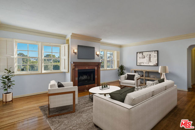 Welcome home to this enchanting upper unit beaming with character and charm in the heart of beloved Carthay Square. Enjoy an abundance of natural light that beams through the grand picture windows and reflects off of gleaming wood floors. The spacious living room is picture-perfect, accented by a warm fireplace and elegant crown molding detail. Beautifully updated, the stylish kitchen features white cabinetry, tile backsplash, stainless-steel appliances, and dishwasher, flowing graciously to the breakfast nook. Additional amenities include a well-appointed bedroom, bath with tub and shower, in-unit laundry, ample storage, parking, and community yard for al-fresco dining or lounging. Centrally located, this home is just moments from local dining, shops, and entertainment.