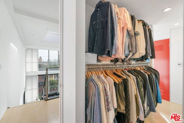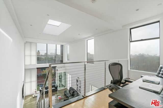 Experience sophisticated living in this stunning two-story corner penthouse loft with 2 bedrooms and 2 bathrooms, designed by internationally renowned award winning architect Lorcan O'Herlihy. Ideally situated in the heart of the highly sought-after Hancock Park / Larchmont Village neighborhood, blending architectural drama with effortless comfort and chic details, this residence showcases soaring 19-foot ceilings and an expansive open floor plan designed for both entertaining and everyday living. Walls of windows flood the space with abundant natural light, highlighting the loft's airy scale and modern design along with seamless indoor-outdoor flow, highlighted by the spacious and private patio offering breathtaking panoramic views stretching across the Westside skyline and the iconic Hollywood Hills the perfect setting for morning coffee, sunset dining, or evening gatherings under the city lights. The thoughtfully designed layout offers exceptional versatility with open entertaining and private bedroom/work spaces on both levels including a luxurious primary suite, creating a true urban retreat that feels both grand and inviting yet functional and cozy. Features include the chef's kitchen equipped with Viking appliances and a glass door refrigerator, power shades, custom wall wine cooler, in unit laundry, generous closet spaces and secure parking for 2 cars. Positioned just moments from Larchmont Village's beloved boutiques, cafes, and restaurants, and conveniently close to major studios and entertainment hubs, this location delivers the very best of Los Angeles living. A rare opportunity to own a statement penthouse loft combining scale, light, views, and an unbeatable central location.