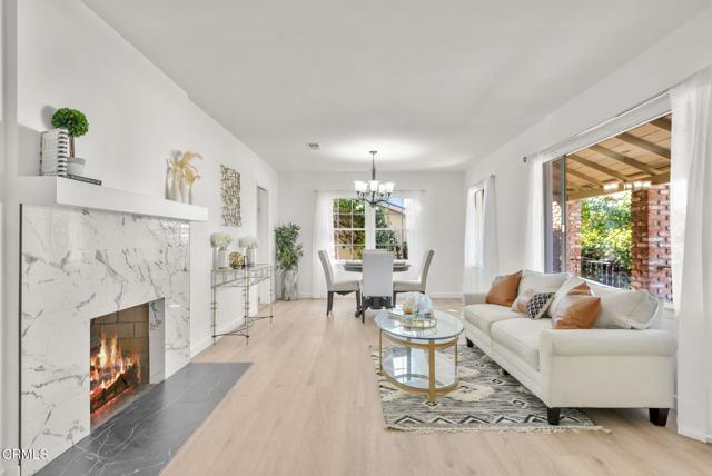 Welcome to this charming three bedroom, one bath home situated on a large 8,254 square foot lot with incredible potential. Recently updated with new flooring, fresh interior and exterior paint, a new garage door, and partial vinyl fencing, this home offers a perfect foundation for customization. Natural light fills the living and bedroom space through numerous windows, creating a bright and welcoming atmosphere. Enjoy relaxing on the charming front porch, or envision the possibilities the generous lot provides -- room for expansion, a pool, a large ADU, or an outdoor living retreat. Bring your vision and make this North Hollywood gem your own!