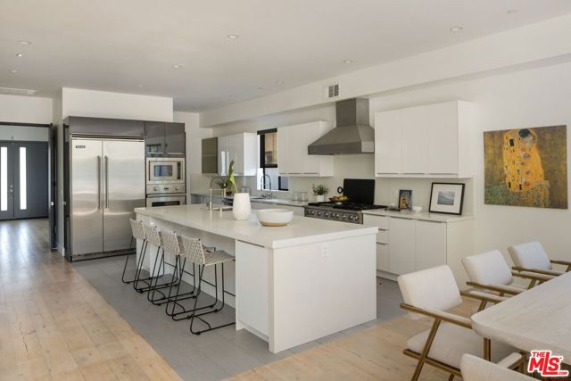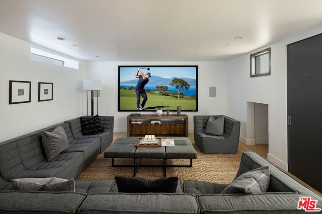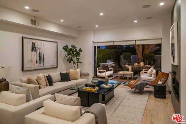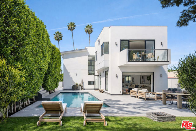 Experience elevated living in Prime Beverly Grove. This newly constructed, gated modern architectural residence offers a rare blend of privacy, scale and refined design. Walls of glass and soaring ceilings flood the interiors with natural light, while wide-plank hardwood floors, designer tile and curated finishes create a sophisticated, contemporary palette. The open two-story floor plan (plus basement media/screening room) flows beautifully for both relaxed family life and grand gatherings. At the heart of the home is the chef's kitchen featuring top-of-the-line Viking appliances, elegant countertops, a massive center island, three ovens, dual sinks and a large walk-in pantry. Fleet wood sliding doors from the living room open to a private backyard retreat designed as a true resort setting with a full-size pool and spa, fire-pit, built-in BBQ, tranquil waterfall and a shaded cabana enveloped by mature landscaping, ideal for effortless year-round entertaining. Upstairs, the primary suite unfolds as a private serene retreat, complete with a fireplace, secluded balcony, spa-inspired bath with soaking tub and rain shower and an expansive walk-in closet. Located on a quiet, tree-lined street just moments from West Hollywood, The Grove, and Beverly Center, this modern estate delivers a rare balance of scale, sophistication, and seamless indoor-outdoor living in one of Los Angeles' most vibrant lifestyle settings.
