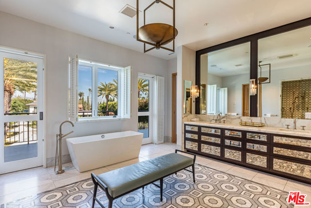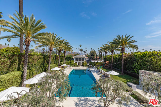 One of the most important properties ever built in the flats of Beverly Hills. Walking distance to the finest shopping on Rodeo Drive. Completed in 2017, this modern Mediterranean villa comprised over 20,000sqft. Soaring high ceilings throughout including a double height entry hall. Impeccable details and open floor plan. Formal living room for grand entertaining. Dining room for 18 guests. Vast gourmet kitchen and adjacent living room opens to the covered terrace and gardens beyond. Large primary suite with living room, office, double baths and closets. Totaling 12 bedrooms each with their baths en-suite, this estate can accommodate many guests. On the lower level, amenities include screening room for 18, wine cellar and subterranean garage for 10+ cars. Full guest house with gym. Grounds include zero edge infinity pool, lawn and sports court. Offered fully furnished and ready for immediate occupancy.