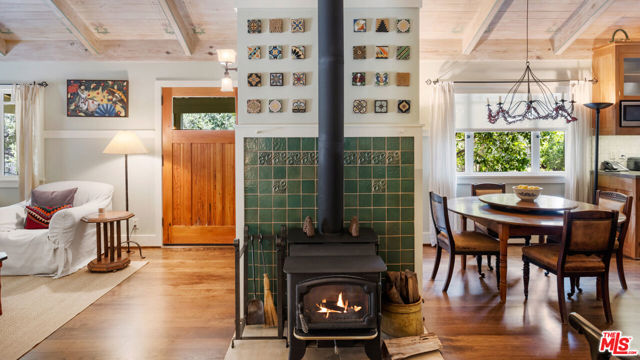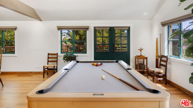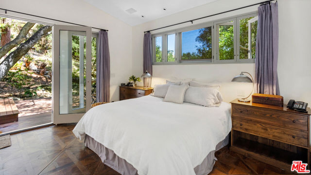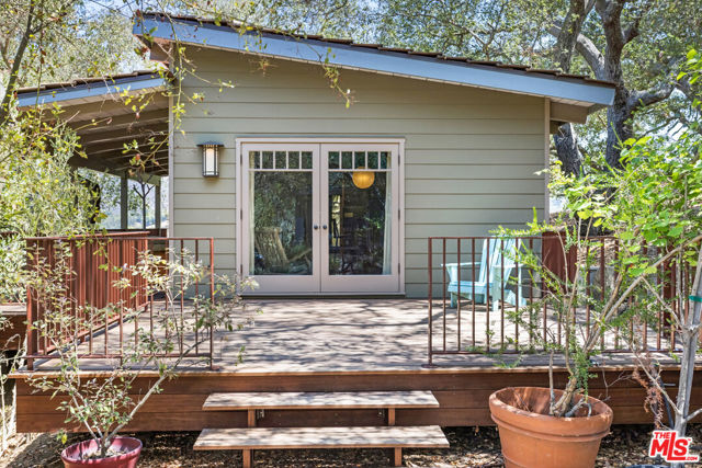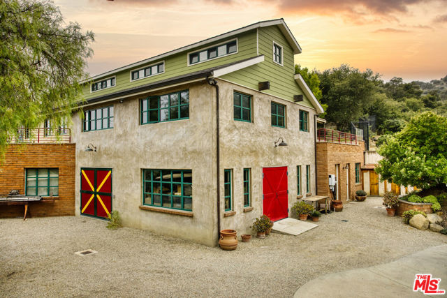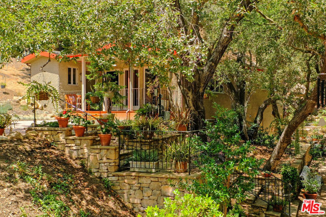 This One-of-a-Kind Estate is located in the most enchanting area of Topanga: Greenleaf Canyon. It offers a rare opportunity to embrace nature and tranquility on 8 plus acres bordered by the Topanga State Park open space. Rock ledges, mountainous terrain, and cross-canyon views are many, long, and spectacular. This property celebrates the very best of Topanga's natural beauty. This offering features three stunning homes. Each is custom-built to perfection: high ceilings, attention to detail, and fine craftsmanship. All three include spacious decks, generous stone or brick patios, and walkways. In addition to the three homes, the property includes a large two-story accessory building with a loft and decks, currently used to create one-of-a-kind craftsman furniture, artistic work, and designs. This incredible "over-built" building offers great potential for an easy creative conversion to a 5000 plus square foot home. It invites your imaginative spirit to work with the currently seven large separate areas and transform into a dream kitchen, living-dining -area, primary bedroom with ensuite bathroom and walk-in closets, art studio, exercise room, library-office, recording studio, entertainment center, up to four luxurious bedroom suites, and more. Several professional architectural renderings have been prepared to illustrate potential existing room transformations and to stimulate your own creative visions. Every view from this bonus building is different and outstanding. There is ample space in two locations for a swimming pool/spa. The property is blessed with the best of Topanga's natural vegetation, including many magnificent old oak trees distributed throughout the property and accompanied by seasonal creeks and whimsical bridges. The many paths and trails that interconnect all parts of the property pass through well-placed fruit tree orchards, vegetable gardens, and decorative landscaping. It welcomes immersing oneself in nature's wonderful miracles. It's not an overstatement to describe this property as PERFECT.