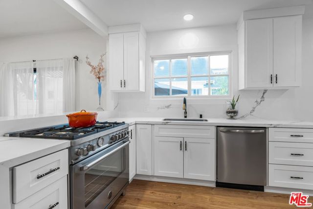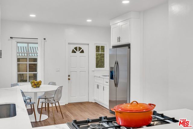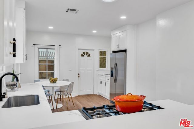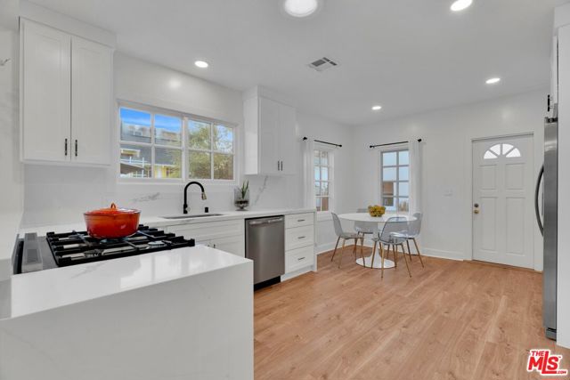 REMODELED. GORGEOUS DESIGNER FINISHES. 3 BED/3BATH PLUS GUEST HOUSE. Nestled in the heart of West Hollywood, this beautifully reimagined urban retreat offers the perfect blend of charm and modern sophistication. The MAIN residence features 3 BEDROOMS and 3 stylishly updated BATHROOMS, complemented by a OPEN CONCEPT FLOOR PLAN, and a chef's kitchen equipped with brand-new stainless steel appliances, HIGH-CHAIR BREAKFAST BAR. Bathed in natural light, the home boasts contemporary finishes and elegant new flooring. The primary bedroom opens directly to a secluded grassy yard, ideal for MEDITATION or quiet reflection WITH BUDDHA OR A DOG RUN SPACE. The expansive backyard is a true oasis, offering ample space for lounging, fitness activities, gardening, entertaining guests, or simply enjoying peaceful moments outdoors. This move-in-ready gem is the ultimate blend of comfort, style, and convenience in one of West Hollywood's most sought-after neighborhoods.