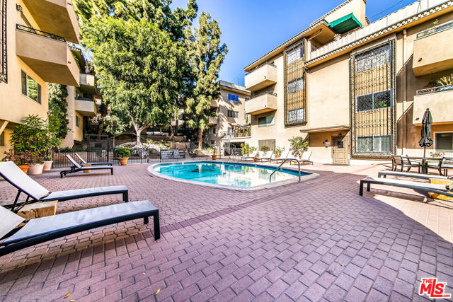HUGE Price Adjustment!! Best buy in The Highlands over 1,200 sq. ft.in the most desirable location tucked away in the back of the complex!! The Highlands, a Hollywood Hills mid-century condominium complex designed by renowned architects Paul R. Williams and Les Scherer, is just minutes from the iconic Hollywood Bowl and The Ford. Nestled in the rear building and set back from the street, this front-facing corner unit offers serene views of the hills and lush greenery. The formal entry leads to a spacious kitchen, seamlessly connected to the expansive living and dining areas. It boasts stainless steel appliances, a pantry, and a breakfast bar. The open-plan layout fills the space with natural light, creating a bright, airy atmosphere. A private balcony off the living area offers peaceful views of the tranquil courtyard, ideal for al fresco dining or simply relaxing. With no shared walls except for the unit above, this corner unit offers unparalleled privacy. The spacious primary suite is a serene retreat with ample closets and an en-suite bathroom with subway tiles. Additional perks include side-by-side parking spaces, and the HOA includes earthquake insurance. The Highlands offers resort-style amenities set amidst 12 acres of lush, private landscaping, including two sparkling swimming pools, a rejuvenating spa, tennis and pickleball courts, fitness center, saunas, community room and more. Outdoor enthusiasts will appreciate the dog run and hiking trails, creating the perfect balance of relaxation and recreation. Located just minutes from the vibrant Hollywood & Highland area, you'll be surrounded by restaurants, boutiques, a farmer's market, hotels, gyms, Runyon Canyon, and social clubs. With easy access to Downtown LA and major studios, this location offers the perfect blend of convenience and city excitement. Also available for possible lease