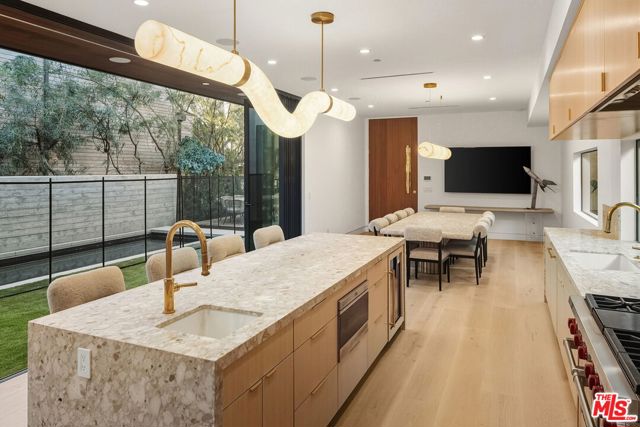 Tucked away in one of Venice's most desirable pockets, just moments from the iconic Abbot Kinney, this brand-new architectural residence is a private offering of rare design pedigree. Meticulously crafted by renowned local architects Electric Bowery, the home seamlessly blends bold materiality with coastal sophistication. Step inside to soaring ceilings, an open-concept floor plan, and curated spaces designed for elevated living. Every finish has been thoughtfully selected and masterfully executed from the live brass Honey Onyx powder room to the Corteccia Natural Quartzite in the first-floor bath, the Tiger Eye Onyx in the guest bath, and the showstopping Calcutta Sunset marble in the primary suite. The media room's Lilac Marble wall adds a refined, artistic touch. At the heart of the home, the kitchen is a true statement piece featuring Ceppo marble countertops, white oak custom cabinetry, and designer Rejuvenation hardware. The adjacent dry bar, clad in striking Rosso Levanto marble, sets the tone for sophisticated entertaining. Indoor-outdoor living is effortless here, thanks to a tranquil pool that blurs the line between the interior and lush exterior spaces. A spacious three-car garage completes the home, ensuring both functionality and convenience. This is not just a home, it's a design-forward sanctuary where luxury, privacy, and location converge. Private showings available to qualified buyers. FINISHES & FURNITURE LIST AVAILABLE UPON REQUEST. ALSO AVAILABLE FOR SALE $6,700,000.