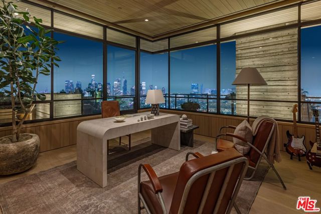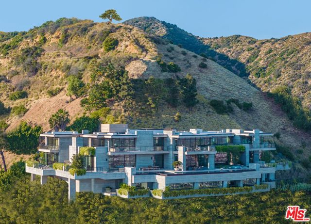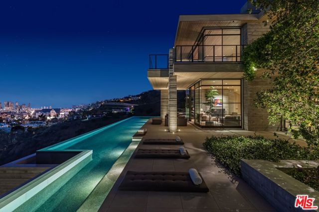 The Hollywood Hills House designed by Scott Mitchell Studio is a monumental and versatile modern villa rising out of the Hollywood Hills. The layered and terraced house - designed for living and entertaining - embraces views that span L.A.'s cityscape from east to west and out to the Pacific Ocean. This property is set on Los Angeles's most iconic promontory, formally owned by Howard Hughes, that extends over one acre with no neighbors on either side and 270 views of the entire city. Set at the 50-yard line of legendary hot spots Chateau Marmont, Tower Bar, and the Hollywood Bowl, the energy of the city can be seen and felt from the estate's peaceful privacy. Additionally, the property borders state land so no building can be constructed behind it, and it has private access to hiking in the famous Runyon Canyon. The form of the house follows a rigorous commitment to rich, organic materials and light. Grand outdoor decks provide seamless indoor and outdoor living. With expansive volumes over three floors, the tranquil and rooted hillside haven exudes a sense of balance, repose and a seamless connection to the natural landscape. A secluded driveway inclines to an impressive, cobbled motor court that can accommodate 12 or more cars and is nestled under the house with far-reaching views across the city. From there the villa's grand and wide staircase begins, following the form of the building, passing a large-scale, vertical water feature to the landscaped north terrace and walkway, where native plantings and open fires frame the principal steel window and door entry system. On entering, to the east is a luxurious study and to the west, an open living room with fireplace and views across the city that flows into the dining room and on to the kitchen and family room, where floor to ceiling glass sliding doors open seamlessly connecting indoor and outdoor and framing wide urban vistas. On the exterior, wire-brushed narrow Itauba deck boards and an elegant dark stone clad infinity pool and hot tub are flanked by a sunken fire pit and seating area. A stand-alone pool bar and lounge is connected by a covered breezeway adjacent to an outdoor seating area. Walkways and terraces continue around the house incorporating native oaks and under-storied plantings that are composed with elements of fire and water. On the upper level, the primary bedroom wing comprises not only the primary bedroom but separate bathrooms and dressing rooms, and a study that can be isolated from the rest of the suite by a discreet pocket door system. On the lower level is a recreational zone with state-of-the-art screening room, billiards room with lounge area, and a bar. These program elements are organized around a gracious distribution foyer which doubles as a secondary point of entry to the house and leads to the motor court, which can be converted into a conditioned, modern ballroom. The house was built over a 10-year period, and new codes have been created since its construction, preventing a home of this type ever being built again in the Hollywood Hills. The house is constructed with $30 million of solid poured-in-place board-formed concrete with three feet thick concrete walls, and over 100 caissons that go 100 feet deep. The hard cost of the construction is $3,500 a square foot not including the land. The project engaged JRC Group, Inc., arguably the best builder in the city. The house includes a multi-million-dollar Jada steel door package, custom millwork, and audio/visual.