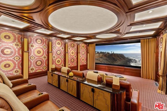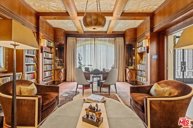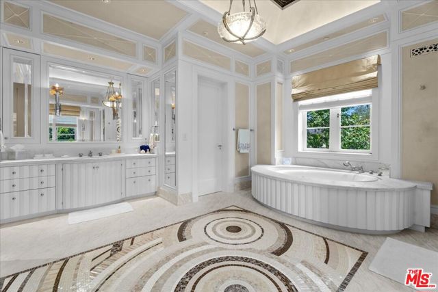 A triumph of design, craftsmanship, and grandeur, 804 N. Elm Drive is an extraordinary approx. 20,000-square-foot Italian-style limestone villa nestled in the heart of the prime Beverly Hills Flats. Created by a powerhouse team of Los Angeles design icons - architect Richard Landry, builder John Finton, interior designer Joan Behnke, and landscape designer Christine London -this 7-bedroom, 15-bathroom estate was the recipient of Robb Report's Ultimate Home Award and stands as a true modern classic. Completed in 2011, the home is crafted entirely from hand-carved Dijon limestone, with a west-facing facade that fuses classical Italian elegance with Art Deco sophistication. The interiors are a symphony of curated detail, from a soaring foyer with a 7-foot bronze chandelier and Dale Chihuly glass sculptures, to panel-lined corridors illuminated by silk runners and vintage light fixtures. Every space has been designed for both intimate living and large-scale entertaining. The grand living room features custom architectural details and opens seamlessly to a stone-paved loggia through accordion doors, allowing for effortless indoor-outdoor flow. A 1,000-gallon saltwater aquarium, a two-story groin-vaulted gallery terrace, and a theater with a hand-crafted mahogany ceiling enrich the estate's immersive ambiance. The formal dining room overlooks the front garden and features custom millwork and bespoke lighting. The kitchen, designed to accommodate multiple preparation areas, is equipped with a stainless-steel barrel-vaulted ceiling, kosher Italian granite countertops, and hand-built mahogany cabinetry. A spacious breakfast room opens to the garden, pool, and water features, emphasizing the home's seamless connection between indoor comfort and outdoor beauty. The primary suite is a private sanctuary with vaulted ceilings, French doors to a trellised terrace, dual master baths, and a flexible sitting area that can be closed off with a large pocket door. One primary bathroom features a scalloped ceiling, custom mosaic floors, and a glowing skylight, while the second primary bathroom is clad in rich wood and Italian marble with bespoke bronze fixtures. Below ground, the lower level includes a nautically inspired game room, a full spa with an Endless pool, hot tub, steam room, massage area, and a professional-grade home theater. These amenities provide space for both recreation and relaxation, all finished to the highest standards. The exterior continues the home's architectural brilliance with a limestone rear facade enhanced by classic columns, arched openings, and carved roof details. The landscaping reflects a Northern Italian palette, transitioning from formal clipped boxwood and citrus trees at the front to lush, informal plantings and potted greenery surrounding the pool and entertaining areas in the rear. A pergola with a partial outdoor kitchen and grill completes the backyard retreat. A separate stone-clad guest pavilion offers privacy and rustic charm, positioned as a counterpoint to the elegance of the main residence. 804 N. Elm Drive is a rare achievement in architectural vision, blending classical European inspiration with California luxury living in one of Beverly Hills' most coveted locations.