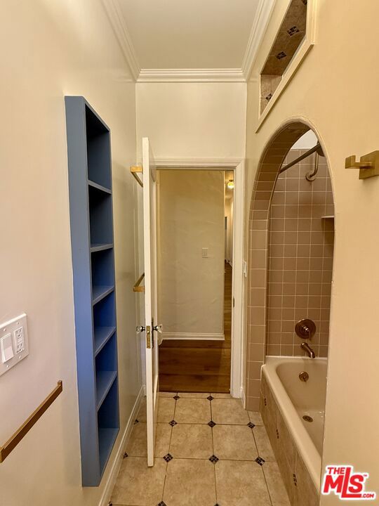 Quaintly situated in West Hollywood's vibrant Tri-West neighborhood, this Spanish Revival residence blends original charm and pride of ownership with modern updates throughout. Boasting two bedrooms, one updated kitchen and bath, ample storage, and over 1,000 sq ft, the home offers a rare combination of character and refinement. The kitchen features new quartz countertops, a new sink, stainless-steel appliances including a refrigerator with water filter and ice maker, dishwasher, LG washer and dryer, gas stovetop, generous cabinetry and storage, undermount lighting, and stainless-steel shelving. The hallway and bedrooms offer new luxury vinyl plank flooring, while the living room retains its original hardwood. Three split A/C units provide zoned comfort in the living room and bedrooms. The bathroom includes a quartz vanity, new light fixtures, and custom-built shelving, while the hallway's vintage Old Hollywood lighting ties in seamlessly with the property's character. A lush shared backyard features a hammock, deck, outdoor patio furniture, infrared sauna, and private community space. ***Street parking only; two permit passes included for the first year of lease.*** The location offers some of the best walkability in the city -- steps from bars, restaurants, fitness clubs like John Reed, Erewhon, Trader Joe's, the Pacific Design Center, and the bustling Melrose and Santa Monica Boulevards. Find your quiet respite in the center of it all here at 840 Huntley Dr!