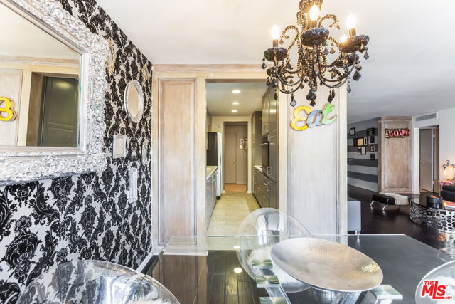 Located in the iconic mid century Kings Plaza, this recently remodeled West Hollywood condo offers a refined, moody aesthetic with timeless architectural appeal. Updated with a darker, more dramatic palette, the home balances elevated design with everyday comfort. With over 1,000 square feet of living space, it is among the largest one bedroom residences currently available in West Hollywood. Espresso toned hardwood floors run throughout, anchoring the open living space. Floor to ceiling glass sliders bring in natural light and open to a private balcony, creating a seamless indoor outdoor flow. The remodeled kitchen features sleek custom cabinetry, stainless steel appliances, and contemporary finishes. Updated bathrooms offer a clean, spa inspired feel with modern fixtures. The primary suite serves as a calm retreat with expansive windows and a comfortable, hotel-like atmosphere. In-unit washer/dryer installation is reviewed on a case by case basis and does require an architectural application and Board approval. Residents enjoy a landscaped courtyard with a heated pool and spa. Centrally located in West Hollywood, the building is moments from the Melrose Place Farmers Market, popular dining, boutique shopping, and Melrose and Santa Monica Boulevard. A standout opportunity to own a remodeled residence in one of West Hollywood's most desirable mid century buildings.