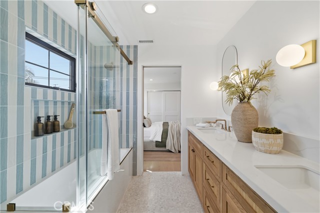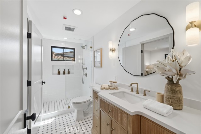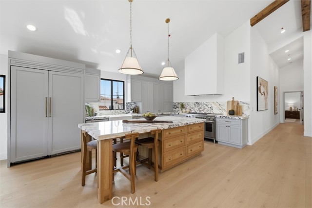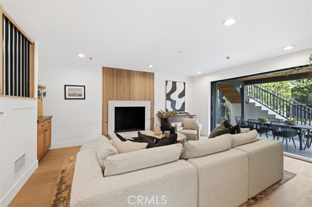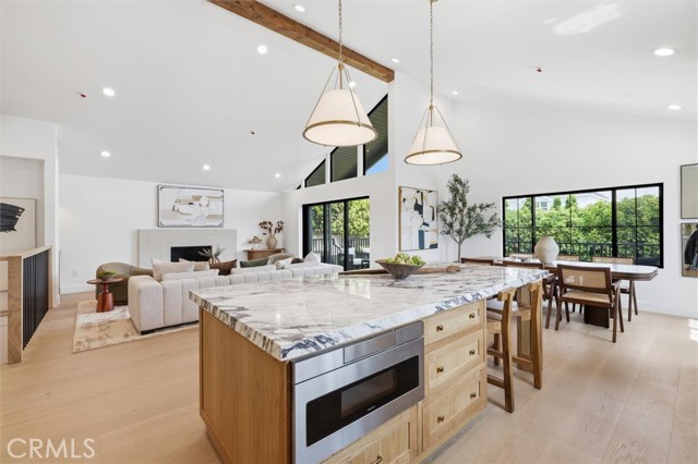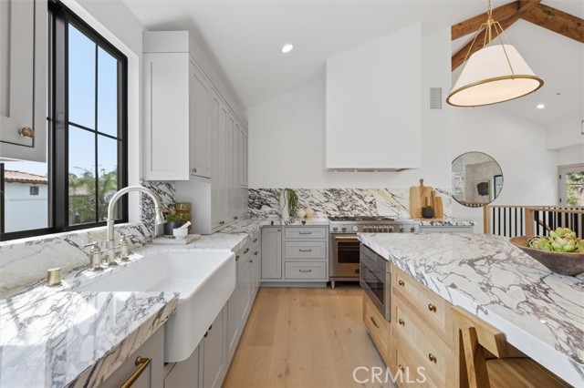 Situated in the highly sought-after Hill Section of Manhattan Beach, just 0.4 miles from downtown, this extensively remodeled residence offers 3,369 square feet of thoughtfully designed living on a 6,000 square foot lot. Beautifully reimagined with both functionality and style in mind, this home has been extensively renovated from the framework out, with all new systems and finishes throughout. The home features 4 bedrooms, 3.5 bathrooms, a dedicated office, and multiple flexible living spaces to accommodate today’s lifestyle. Designed with a reverse floor plan to maximize the downward lot, the main living level is located on the second floor and serves as ground-level entry from both the garage and front door. The main living level is highlighted by soaring vaulted ceilings, a light-filled living room, and a beautifully appointed kitchen featuring Calacatta Viola marble slabs. This level also includes the primary suite, a powder room, and a highly functional mudroom and oversized laundry room conveniently located off the garage. The lower level offers three additional bedrooms, two bathrooms, a spacious den, and a versatile bonus space ideal for a gym, playroom, or secondary office. Sliding doors open to a large covered patio—perfect for year-round indoor/outdoor living—overlooking the flat backyard. Plans for a pool and spa (buyer to verify) provide an opportunity to further enhance this beautiful and private outdoor space. Additional features include dual-zone heating and air conditioning, a striking black shingle and siding exterior with a bold, modern coastal aesthetic and a white oak garage door that adds to the home’s elevated curb appeal. With its prime location near downtown, the beach, and top-rated schools, this home offers the best of Manhattan Beach living.