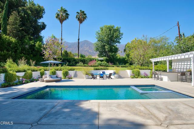 Welcome to a truly rare offering in the heart of Sierra Madre - a new-construction, fully furnished estate designed for privacy, comfort, and unforgettable living. Completed in 2020 and set on a beautiful, tree-lined cul-de-sac, this single-story home sits on a lush half-acre lot and delivers a level of space, finish, and outdoor living almost impossible to find in Los Angeles. Just a few short blocks from the picturesque downtown Sierra Madre, you'll enjoy morning coffee at Syndicate, charming restaurants for every meal, a local brewery, art galleries, and stunning neighborhood parks - all while returning home to total privacy and tranquility. Featuring 4 bedrooms and 3.5 bathrooms, the thoughtfully designed layout is ideal for both entertaining and everyday living. Whip up meals in the chef's kitchen, host dinner parties in the formal dining room, and relax in the comfortable family room. The backyard is designed for a true resort-style experience, featuring a sparkling pool, fire pit, outdoor kitchen, treehouse, mature fruit trees, and detached 1-bed, 1-bath ADU. Modern amenities include a full security system, smart home features, Sonos surround sound, and Tesla solar panels. Close proximity to the Mount Wilson trailhead and Chantry flats invites weekends spent hiking through nature and easy freeway access allows for exploration of greater Los Angeles. This is not just a rental. It's a fully turnkey lifestyle home - ideal for anyone seeking space, beauty, and ease.