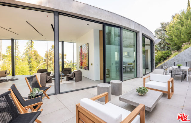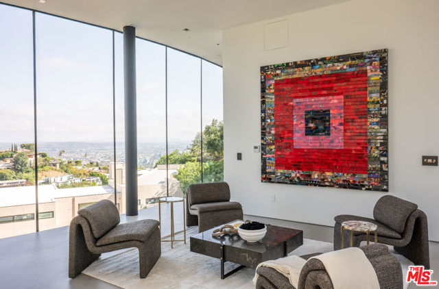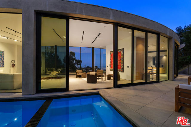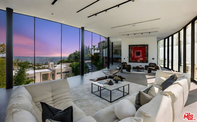 Introducing "The Curve on Thrush", a newly constructed architectural gem nestled in the exclusive Bird Streets above the Sunset Strip. Designed by the award-winning Tag Front Architects, whose portfolio includes some of the most celebrated modern residences in Los Angeles, this sculptural glass home stands as a bold expression of art, architecture, and lifestyle at the highest level. With its sweeping curved glass facade and striking steel form, "The Curve on Thrush" is more than a residence, it is a statement piece. Elevated above the city and surrounded by multi-million dollar estates, it offers absolute privacy while being moments from the very best of Los Angeles. From world-class dining and high-fashion boutiques to iconic nightlife, this home places you at the intersection of Sunset Strip energy, West Hollywood culture, and Beverly Hills luxury.Inside, the interiors unfold with dramatic scale and seamless flow. Soaring ceilings, a floating glass staircase, and expansive open-plan living areas create a gallery-like experience designed for both grand entertaining and intimate living. Every element reflects the architectural precision and material mastery that define Tag Front's work.Three luxurious bedroom suites are appointed with spa-grade finishes and filled with natural light. A private theater, elevator access, and full smart home integration elevate the living experience even further. Outdoors, a sleek pool and spa are framed by drought-tolerant landscaping, blending sustainability with serenity.A rare offering in one of Los Angeles' most coveted enclaves, The Curve on Thrush is not just a home, it is a lifestyle, a legacy, and a landmark of contemporary design.