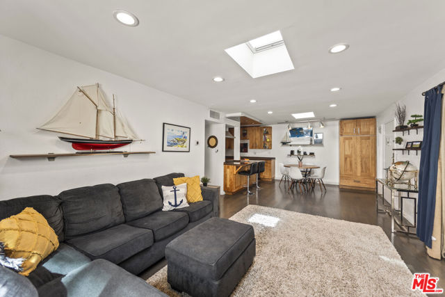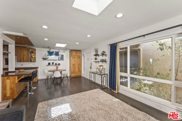 Prime West Hollywood Top-floor Corner residence - a beautifully designer-remodeled, move-in-ready retreat offering style, light, and comfort. Bathed in natural sunlight from multiple skylights, this light-filled home exudes warmth and sophistication with beautiful flooring throughout. The stunning open-concept kitchen has been thoughtfully remodeled with sleek newer cabinetry, stunning tile floors, stainless steel appliances, glowing granite countertops, and a breakfast bar perfect for entertaining or casual dining. The spacious layout features two generously sized bedrooms with ample storage, including a serene primary suite with a private en-suite bath. Gleaming hardwood floors, newer carpet, and updated windows enhance the home's modern appeal. A convenient in-unit stacked washer and dryer adds everyday ease. Enjoy the security of a gated garage with dedicated parking and additional storage. Ideally situated adjacent to the community's resort-style amenities, residents enjoy access to a sparkling pool, relaxing spa, and lush green space creating a peaceful oasis in the heart of the city. Located just moments from West Hollywood's trendy boutiques, acclaimed restaurants, and vibrant nightlife, this exceptional home offers the very best of urban living. A rare top-floor corner opportunity - not to be missed.