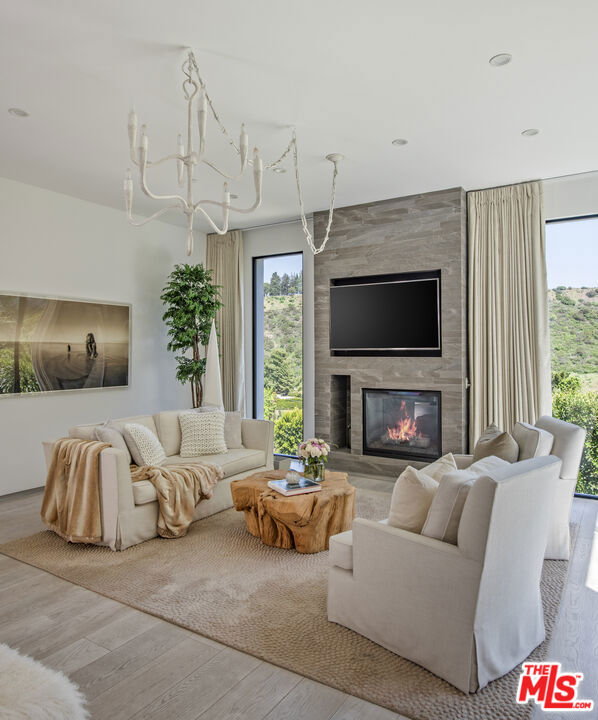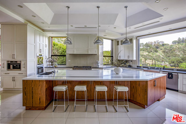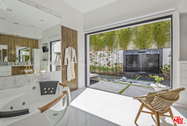 Exceptional modern estate, quietly nestled at the end of a peaceful cul-de-sac, offering a rare sense of serenity and seclusion in the heart of one of the world's most iconic neighborhoods. Surrounded by lush natural beauty and designed for secure, elevated living, this private retreat spans approximately 9,000 square feet of meticulously curated space that blends contemporary sophistication with the calm of a high-end resort. This estate goes beyond the ordinary with its fully customized indoor golf simulator featuring the same Full Swing Golf system used by Tiger Woods. Instead of a traditional home theater, this one-of-a-kind space offers a luxury sports experience at home, complete with immersive visuals, pro-level performance tracking, and realistic course play from world-famous greens. Smart home features include Sonos audio, iAquaLink pool control, Lutron lighting, and Nest climate systems, all designed to elevate modern living. The gourmet kitchen is appointed with top-tier appliances and sleek finishes ideal for both entertaining and everyday enjoyment. The primary suite serves as a tranquil sanctuary with dual marble-clad baths and generous his-and-hers walk-in closets. Six additional bedrooms offer flexible living, easily transformed into guest suites, executive offices, a gym, or a man cave. Recent upgrades to the estate enhance both function and aesthetics. Outdoors, the property transforms into a private oasis. A dramatic infinity-edge pool invites relaxation, while a spa, lush lawns, multiple water features, and a breathtaking living wall of succulents create a truly immersive, resort-like environment. With parking for six vehicles and every detail carefully curated, this estate offers elevated living in every sense. Nestled in one of Beverly Hills' most coveted enclaves, this extraordinary residence offers an unparalleled sanctuary of refined elegance, tranquil privacy, and unmistakable prestige more than a living space, it is a bold statement of ultimate luxury and distinction.