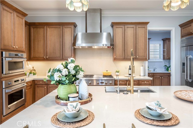 Experience elevated living in this stunning 4-bedroom, 4.5-bathroom residence with a magnificent view and spacious loft, perfectly situated behind the prestigious gates of The Grove at Orchard Hills. Perched on a scenic hillside, this home offers sweeping views and unforgettable sunsets from your private outdoor terraces. Step inside to find an inviting open layout featuring a main-floor bedroom suite and a stylish powder room for guests. At the heart of the home, the chef-inspired kitchen impresses with an expansive island, a 48” GE Monogram professional 6-burner range, wine chiller, built-in refrigerator, walk-in pantry, and beautifully upgraded maple cabinetry. Premium flooring and plantation shutters add timeless elegance throughout. The luxurious primary suite offers a spa-like bath with a freestanding soaking tub and private terrace — the perfect retreat to unwind and take in the serene sunset views. Enjoy immersive entertainment with 5.1 surround sound speakers in the great room, or relax in the seamless indoor-outdoor spaces, including the California room and upstairs terrace. Additional highlights include a built-in refrigerator, washer, and dryer — all included. This exquisite home harmoniously blends sophistication, comfort, and California charm.