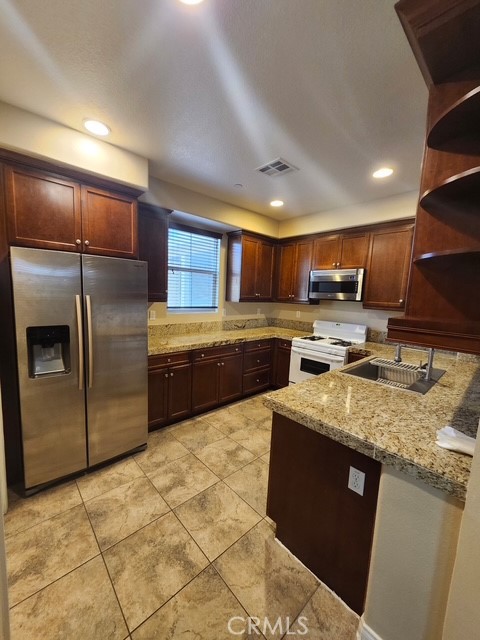 Welcome to 1229 Abelia, a spacious tri-level condo in the highly desirable Columbus Grove community of Irvine. This thoughtfully designed residence offers a one-bedroom plus office/den layout, blending comfort and functionality. The living area features beautiful LVP floors and abundant natural light, flowing seamlessly to a lovely balcony with peaceful views of the riverbed. The kitchen is equipped with granite countertops, stainless steel and white appliances, stainless finishes and ample storage, making it perfect for both everyday living and entertaining. A separate laundry room adds convenience. The flexible office/den offers space for a home office, guest room, or workout area. Upstairs you will find the expansive primary suite including a walk-in closet and a luxurious en-suite bathroom complete with dual sinks, a soaking tub, separate shower, and private water closet. Additional highlights include both a one-car attached garage and a one-car detached garage, providing plenty of parking and storage. Residents of Columbus Grove enjoy access to resort-style amenities such as a pool and spa, playgrounds, sports courts, BBQ areas, and nearby walking and biking trails. Situated within the award-winning Irvine School District and just minutes from The District, Diamond Jamboree, and The Market Place, this home combines a prime location with an exceptional lifestyle. **washer/dryer/refrigerator now included!!**