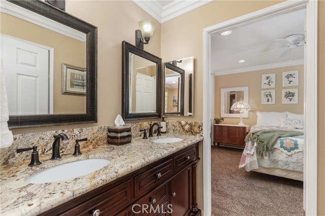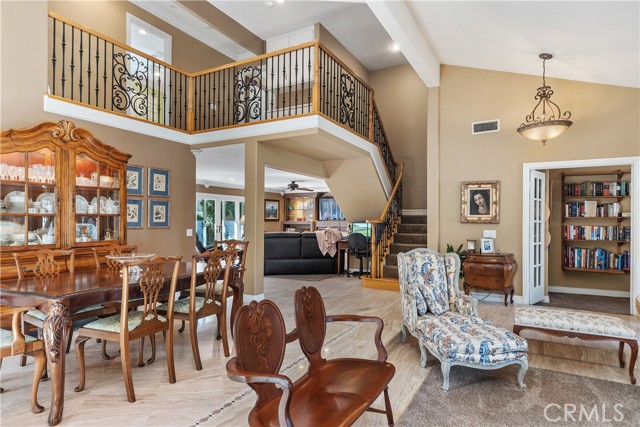 Beautifully situated in North East Santa Ana’s desirable Young Square neighborhood, this exceptional home rests near the end of a quiet cul-de-sac offering privacy with no drive-through traffic. Step through elegant leaded glass double doors into a bright, open floor plan featuring vaulted ceilings, beautiful crown molding, a sunken living room, and a formal dining room, perfect for gatherings both intimate and grand. The home offers 3 spacious bedrooms, 2.5 bathrooms, plus a dedicated office space, providing flexibility for today’s lifestyle needs. A striking wrought iron staircase leads upstairs, where all three bedrooms are thoughtfully positioned. The luxurious primary suite features his-and-her closets, an oversized storage closet for additional organization, and a spa-like ensuite complete with dual sinks and an expansive walk-in shower. The secondary bedrooms are connected in a convenient Jack-and-Jill layout, ideal for family or guests. The kitchen opens seamlessly to an intimate dining area and inviting family room with a cozy fireplace, creating the perfect space for everyday living and entertaining. Comfort and style are beautifully captured throughout this lovely home. The lush backyard is ideal for entertaining family and friends, while the manicured front and rear yards enhance the home’s curb appeal. Additional highlights include: 2-car attached garage, HVAC and furnace approximately 6 years old, Dual-pane Andersen windows throughout, and a Durable tile roof. This is a rare opportunity to own a beautifully maintained home in one of North East Santa Ana’s most desirable neighborhoods.