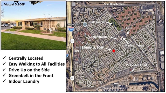 This is a fantastic move in ready, partially expanded, two bedroom one bath corner unit in Mutual 5. It has the best of all worlds - greenbelt in front for privacy plus drive-up on the side so you can easily unload groceries. In fact there is a side door allowing direct access to the street side of the unit. It has a perfect location right in the middle of Leisure World for easy access to all amenities and well away from the freeway and the power plant. The unit boasts dual pane windows, two heat pumps, and beautiful laminate throughout. The kitchen has a built in microwave and dishwasher as well as a newer countertop. The bathroom shower has upgraded glass and there is a WASHER/DRYER! The patio out front is perfect for that morning coffee or evening wine with friends. There is a lockable storage room on the patio. If you are looking for a move in ready corner unit in a great location at a reasonable price - this is it! Carport located at Bldg 71, Space 31.