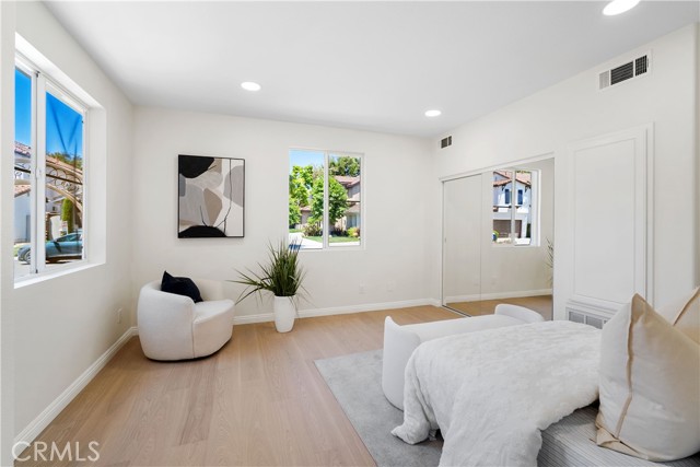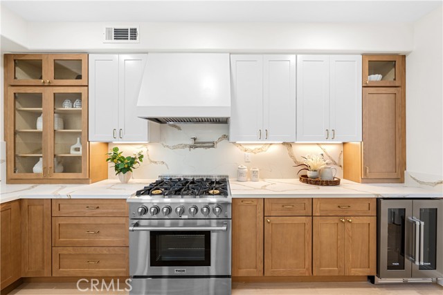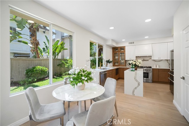NEWLY REMODELED CORNER UNIT! Nestled in the coveted Lyon Ridge community of Aliso Viejo, this stunning 4-bedroom, 4-bath corner-unit home has been completely transformed with high-end finishes and thoughtful upgrades throughout. Step inside to soaring ceilings, an open floor plan, and a sun-drenched dining and living room that flows seamlessly into a designer kitchen—featuring sleek new cabinets, sparkling countertops, Thor stainless steel appliances, a built-in wine fridge, and a convenient pot filler above the stove—perfect for entertaining or everyday cooking. Rich engineered hardwood floors run throughout the entire home, leading to a spacious downstairs suite with its own ensuite full bath—ideal for guests, a home office, or a future in-law retreat. Another full bath and laundry room complete the first floor. Upstairs, the expansive primary suite offers a peaceful escape, while two additional bedrooms share a beautifully remodeled bath. The home also features a brand new HVAC system for year-round comfort. Located within walking distance to top-rated St. Mary’s private school and award-winning public schools, and just minutes from Whole Foods, Costco, Trader Joe’s, and 99 Ranch Market—this home truly has it all.