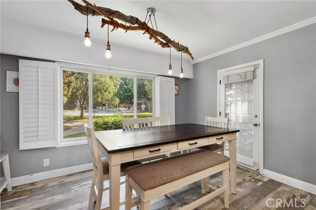 Welcome to your beautifully upgraded home in the desirable Meredith Manor community! As you enter, you’ll immediately notice the incredible custom touches and thoughtful design throughout. The spacious, open floor plan is filled with natural light streaming through an abundance of double-paned windows, highlighting the elegant crown molding. The inviting living room features a charming two-sided fireplace and large shuttered windows that overlook the private patio and courtyard with a sparkling pool — perfect for relaxation or entertaining. The kitchen is a true showpiece with custom countertops, a copper sink, and a beautifully designed backsplash. It opens seamlessly to a large dining area surrounded by picturesque windows, creating an ideal setting for gatherings. The generously sized primary suite offers a remodeled, modern full bathroom with a walk-in shower. The additional bedrooms are roomy and comfortable, and the hallway bathroom has been updated with the same stylish, contemporary finishes. Enjoy the convenience of a large in-unit laundry room with full-size washer and dryer hookups and plenty of extra storage space. A two-car garage is located just steps from your front door. With one of the lowest HOA fees in Orange County, you’ll enjoy great value — including water, trash, pool, and grounds maintenance. This downstairs unit offers the ease of single-level living with no stairs. Located less than two miles from downtown Fullerton and close to restaurants, shopping, the train station, freeways, and Cal State Fullerton — this home offers comfort, style, and convenience all in one.