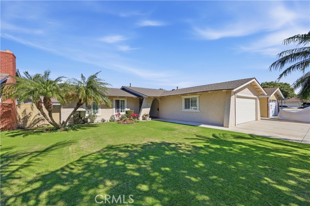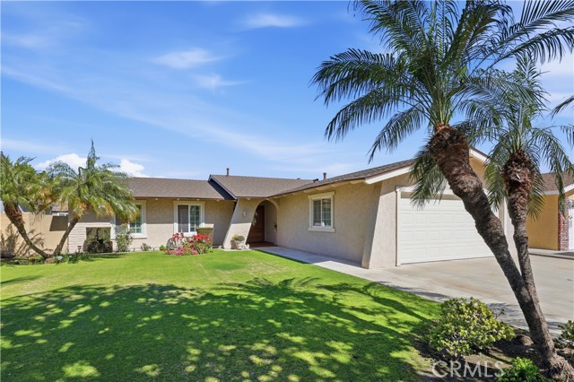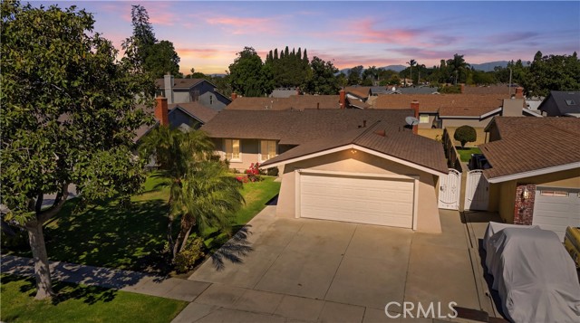 Situated in a quiet cul-de-sac, 1817 E Alcove Way in Anaheim is a charming California Ranch-style home built in 1968. With 1,557 square feet of living space on a 6,000-square-foot lot, it is perfect for first-time buyers or investors. This single-story residence features four bedrooms, each with mirrored sliding closet doors, and a main suite that includes a walk-in closet and a private, renovated bathroom. The home showcases tile floors throughout the entryway, family room, dining area, and kitchen. It boasts a custom bay window, granite countertops, a prep island, and convenient direct access to the garage. The family room offers a cozy gas-burning brick fireplace. Additional amenities include central air conditioning, forced heating, a newer roof installed in 2024, and a new water heater. Custom sliding doors open to the backyard, which features a concrete area, a brick fire pit, and an open covered patio, all surrounded by a block wall for privacy. The beautifully landscaped front yard enhances the home's curb appeal. Located just minutes from Disneyland Resort, Anaheim Garden Walk, Packing District, Honda Center, and the new OCVibe district, this property is a must-see!