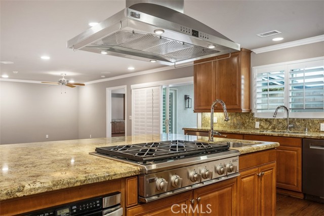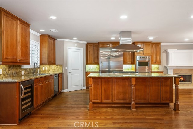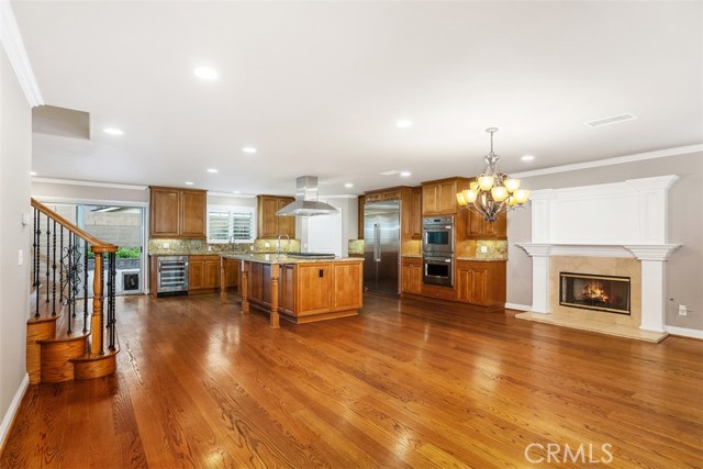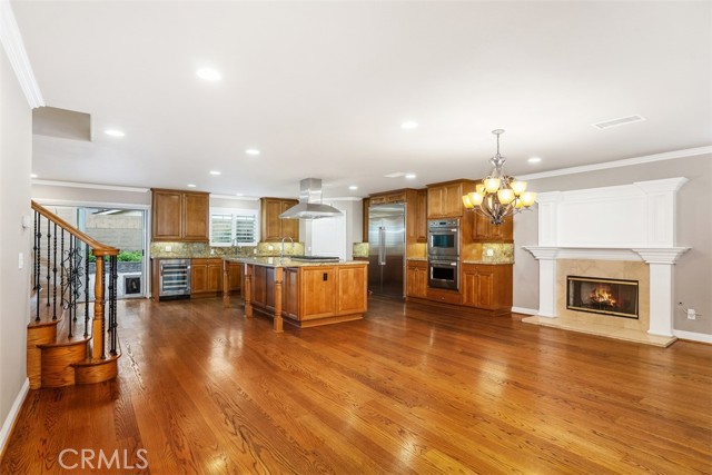 Stunning home completely remodeled and expanded in 2008 with no expense spared! 3,710 square feet, 4-bedroom, 3.5-bath home offering thoughtfully designed living space with high-end upgrades throughout. Every major system has been updated, including all-new copper plumbing extending to the street with a 4-inch main line, upgraded electrical and panels, and modern HVAC with A/C split units for optimal comfort.. The upper level features enhanced double insulation and a stunning custom oak staircase with elegant iron railings. A tankless water heater adds efficiency and convenience. The gourmet kitchen is a true centerpiece, showcasing premium stainless steel Monogram appliances, a Bosch dishwasher, and an expansive island with seating that opens seamlessly to the dining and living areas—ideal for entertaining. All bathrooms have been beautifully upgraded with Toto toilets, French Rohl faucets, and luxurious marble and granite finishes. The home is appointed with real oak hardwood flooring, three fireplaces, plantation shutters, oversized baseboards, and custom trim throughout. Additional highlights include a dedicated media room with a large custom bar seating, plus the flexibility for a private in-law suite with its own separate entrance. The outdoor space features paver hardscaping, a built-in BBQ, and a French drain system. Both front and backyard include sprinkler systems for easy maintenance, and the home is wired for a security system for added peace of mind. Too many upgrades to share! See supplements for full list.