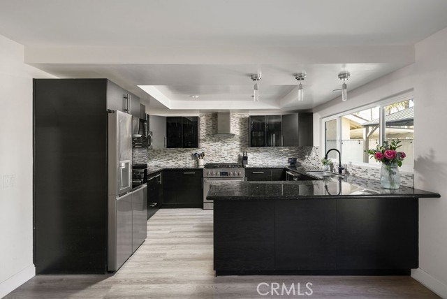 Welcome to an exceptional 4-bedroom, 3-bathroom pool home tucked away on a quiet cul-de-sac, offering the perfect blend of space, style, and functionality for modern Orange County living. Step inside to find newer flooring flowing throughout the home, creating a clean and cohesive feel. The formal living room welcomes you with soaring vaulted ceilings, recessed lighting, and an abundance of natural light, while the separate family room provides a comfortable space to relax and gather. A beautifully renovated wet bar adds a stylish touch, perfect for entertaining. At the heart of the home, the expansive kitchen is designed for both everyday living and hosting, featuring a 6-burner gas range with hood, generous counter space, ample storage, and views of the sparkling pool and spa. This thoughtfully designed home features a highly desirable layout, including a full bathroom on the main level—ideal for guests—with direct access to the backyard, making it perfect for poolside use. The downstairs bathroom showcases designer wallpaper and offers convenient indoor-outdoor functionality. Upstairs, you’ll find all four bedrooms, including the spacious primary suite overlooking the backyard and pebble tech pool, creating a true private retreat. The ensuite bathroom includes a walk-in shower and an impressive three closets, providing both comfort and functionality. Step outside to your own backyard oasis, complete with a pebble tech pool and spa, along with an oversized side yard—ideal for entertaining, play, or additional storage. Anderson sliding doors create a seamless connection to the backyard, while updated windows throughout the home enhance both comfort and efficiency. The front yard features a well-maintained grass lawn, adding to the home’s curb appeal. Additional highlights include solar panels for energy efficiency, an EV car charger, and a 3-car finished garage with epoxy flooring. Located in a desirable Orange neighborhood within a highly regarded school district and close to shopping, dining, and top local amenities, this home offers the perfect combination of comfort, upgrades, and everyday livability.