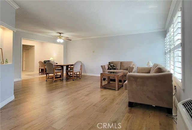 Revamped Charming New Valencia. Great location with an open kitchen, remodeled with Granite countertops, open to the living room and dining room, which has been enclosed as part of the house. Laminate flooring throughout, with carpet in the bedrooms. Large living room with large windows and lots of sunlight. Stacked washer/dryer in the closet, which used to house the water heater. Water heater now outside, encased with a metal enclosure in the patio. Lovely patio with partial cover over half of the patio and also over the front door. Wonderful to sit out on the patio and enjoy the California sunshine. Enjoy the two large lemon trees outside the patio. Close to shopping and all the amenities of the Laguna Woods Community. A 26-hole championship golf course with a putting green. Also, a 9-hole walking course in Gete 7. Convenient walk to covered carport. Clubhouse 4 has swimming and all the creative arts, including pottery, Woodshop, lapidary, sewing, oil painting, watercoloring, and photography. 7 Clubhouses, 5 pools, horse stables, a transportation system, over 200 clubs, and much, much more. Come and enjoy the wonderful senior community of Laguna Woods.