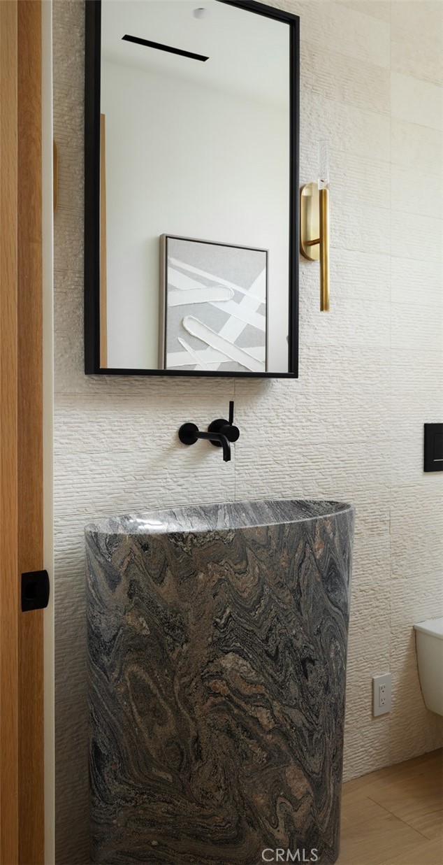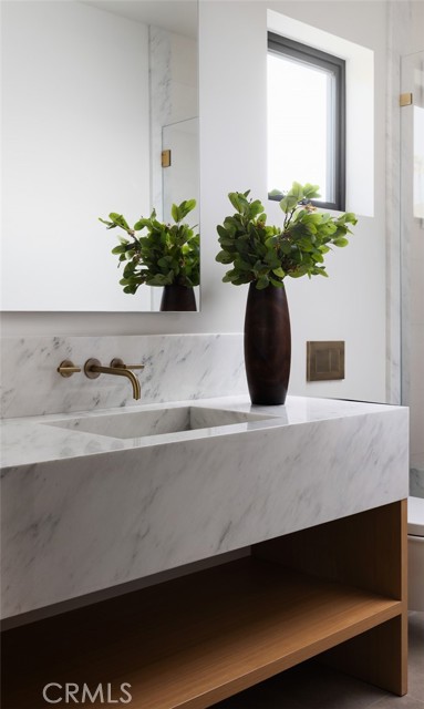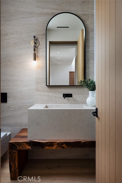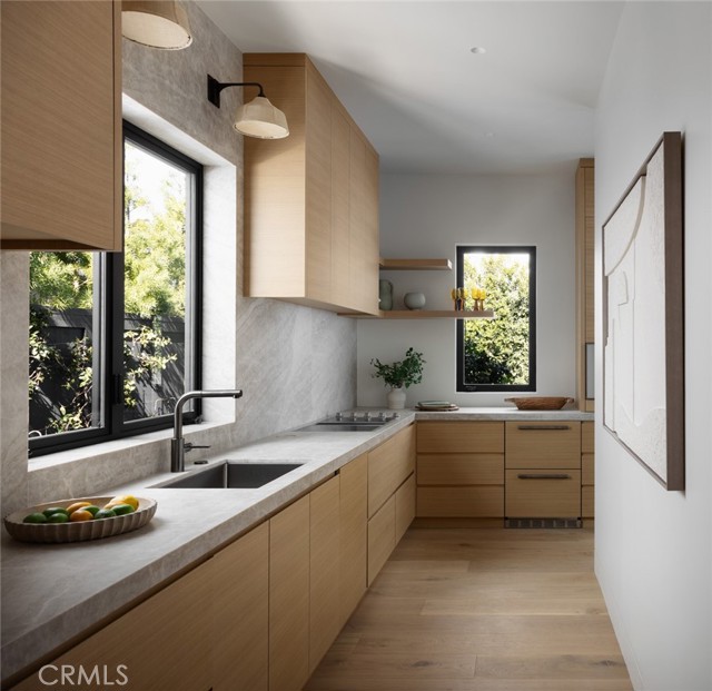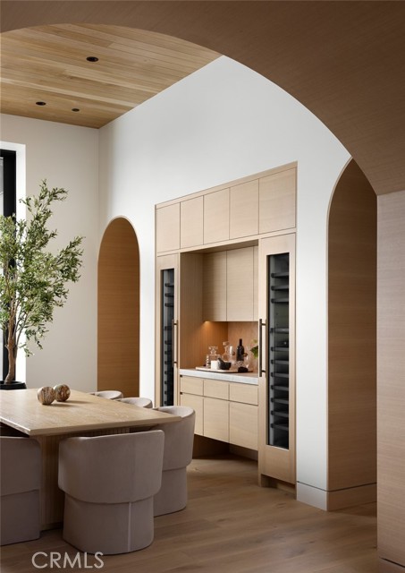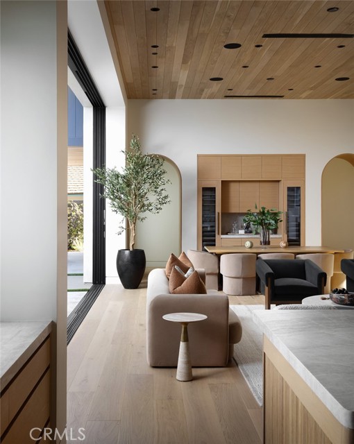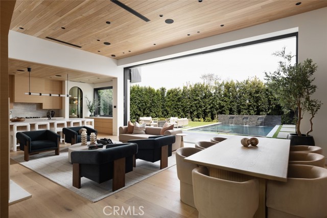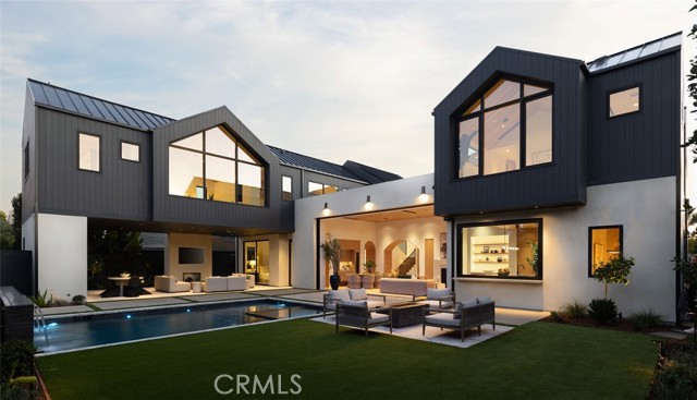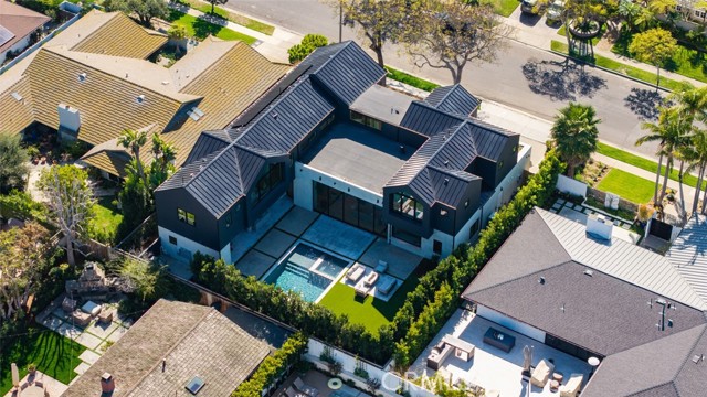 Step into an architectural masterpiece where every element of design invites you into a world of elegance and innovation. The journey begins at a double-height entry, framed by a grand custom oak archway, bringing to mind the tranquil water wall of the pool. Towering 16-foot privacy hedges guide your gaze inwards toward the expansive great room with kitchen and dining areas. Central to the home is a chef's kitchen featuring a Pitt cooktop and elite Gaggenau appliances that enhance the culinary experience, complemented by an island with fluted woodwork, masterfully placed Taj Mahal leather quartzite, and seamless custom oak cabinetry. A convenient automatic pass-through window connects to an outdoor eating area, beside a matching secondary full catering kitchen hidden behind custom-created fluted glass and steel archways. Here, in the heart of the home, additional majestic oak archways merge form and function seamlessly, centering the bar area and art walk behind.The contemporary design, envisioned by award-winning architect Eric Aust, enhances the neighborhood's charm with dramatic dormers, a lush full width living roof, expansive windows, and expert landscaping from Garden Studio. Within its striking exterior, the home features five ensuite bedrooms, five-and-a-half baths, plus an office and a separate loft, spanning 4,857 square feet of harmonious living space. The interior designed by Serendipte, blends luxury and comfort with white oak flooring, vaulted ceilings, and rich limestone and quartzite details, creating an upscale ambiance across two levels. The first-floor bedroom suite offers easy access to the office, which opens to a private front patio. Upstairs, additional bedrooms with private baths and a bonus room offer further living flexibility. The primary suite is a sanctuary with a massive walk-in closet, floating vanities, a freestanding tub, and an indulgent steam shower. Every detail speaks of handcrafted excellence, from wood-clad archways to mud in LED lighting and natural stone tiles by Ann Sacks and Walker Zanger. A three-car garage further provides function with two entry points one to the secondary kitchen and one to the mud room, with a laundry room located upstairs. Wrapped around this home is a lush backyard oasis with a custom pool, spa, 700 sqft California room, full outdoor kitchen, flush mount heat lamps, sound, fireplace and fire pit. This exclusive SkySail residence is destined to elevate your lifestyle for generations.