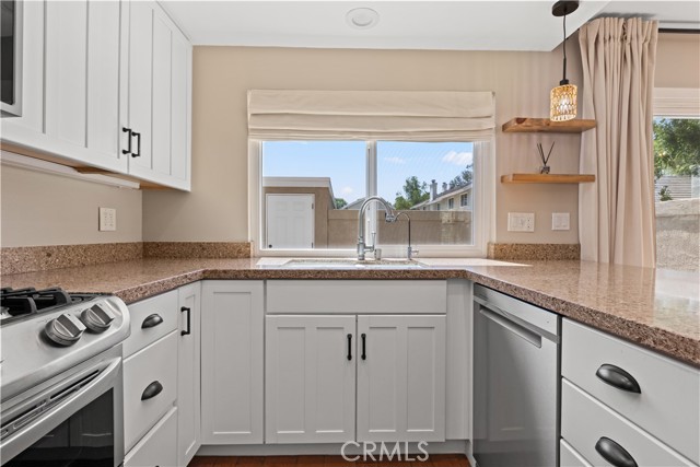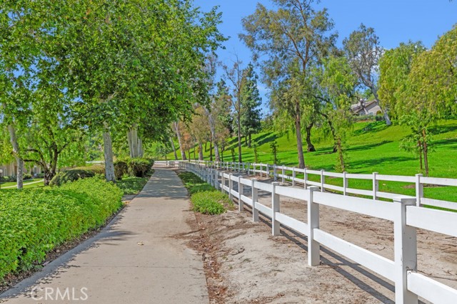 Welcome to this beautifully maintained single-level townhome located in the highly desirable Rancho Dominguez community of Yorba Linda. Ideally positioned as a private end unit, this home enjoys a serene setting with lush greenbelt views from nearly every window, creating a peaceful and inviting atmosphere. Step inside to discover a bright, open-concept layout enhanced by vaulted ceilings and an abundance of natural light. The home features engineered wood flooring throughout, complemented by classic plantation shutters and updated baseboards and painting completed in 2024. The spacious living area is centered around a charming whitewashed brick fireplace and flows seamlessly into the dining space, which opens to an expansive outdoor patio, perfect for both relaxing and entertaining. The kitchen is thoughtfully designed with ample white cabinetry, granite countertops, and a functional peninsula ideal for casual dining or morning coffee. Additional highlights include a gas stove, double oven, and newer appliances, including a dishwasher and microwave installed in 2025. The primary suite offers a tranquil retreat with direct access to the patio through a newly installed sliding glass door. This generously sized bedroom includes a built-in dresser within the closet and an en-suite bathroom. Two additional bedrooms provide flexibility for guests, a home office, or hobbies, each featuring ceiling fans, shutters, and consistent flooring throughout. Outdoor living is elevated with a larger-than-average patio that includes ambient lighting and automatic sprinklers, making it both functional and inviting year-round. Additional upgrades include a new HVAC system installed in 2024, ensuring comfort and efficiency. The home also offers access via the patio to a detached two-car garage and is part of a well-maintained community with amenities such as pools, tennis courts, and playgrounds. Conveniently located near shopping, dining, top-rated schools, and freeway access, this property combines comfort, style, and an exceptional location. Don’t miss this opportunity to own a move-in ready home in one of Yorba Linda’s most sought-after neighborhoods.