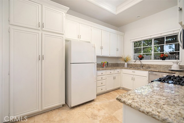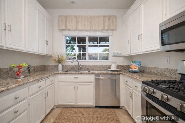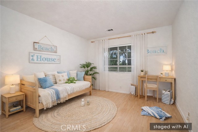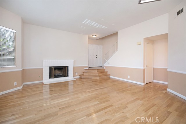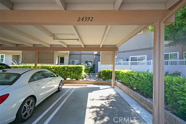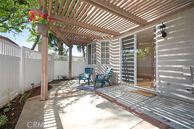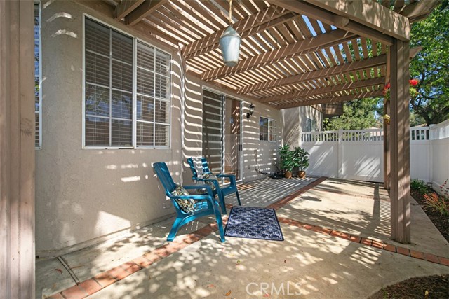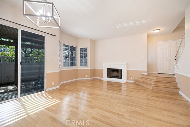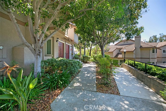 Welcome to this beautifully appointed end-unit residence in the highly desirable Crestline community of Laguna Hills. Offering approximately 1,288 sq. ft., this two-story home features 2 bedrooms and 2.5 bathrooms, thoughtfully designed for both comfort and style. Step inside to an inviting open-concept living space highlighted by soaring ceilings, rich wood flooring, recessed lighting, and a cozy fireplace that anchors the living and dining areas. Natural light fills the home, creating a warm and airy ambiance throughout. The kitchen is both elegant and functional, showcasing travertine flooring, granite countertops, abundant cabinetry, and stainless steel appliances including sink, oven, dishwasher, and microwave. A separate laundry room just off the kitchen adds everyday convenience and includes washer and dryer. Enjoy seamless indoor-outdoor living with a spacious private covered patio, accessible from the living room—perfect for relaxing or entertaining. A private gate offers easy access to the front of the home. The main level also features a convenient guest powder room. Upstairs, both bedrooms offer the luxury of private en-suite bathrooms, each currently updated to provide a refined retreat. Tucked within a quiet and private location, residents of Crestline enjoy resort-style amenities including, pools, spas, and cozy clubhouse. Ideally situated across from scenic trails, and just moments from nearby parks, shopping centers, and dining. Residents enjoy access to HOA amenities including pools, spas, and a clubhouse, all within a pet-friendly community surrounded by greenbelts, and beautiful scenic parks. Conveniently located near Top-rated schools, shopping, Aliso Viejo Town Center, Trader Joe’s, Costco and dining. The Laguna Hills Community Center is close by, featuring a park, soccer and baseball fields, playground and skate park. Easy access to Laguna Beach and Dana Point from Alicia pkwy and major highways including 5 and 73. This is a compelling opportunity for buyers seeking a move-in-ready home or a strong investment opportunity. Parking includes one assigned carport space plus an additional permit space. No garage. Ample guest parking available. A rare opportunity to own a light-filled, well-appointed home in one of Laguna Hills’ most sought-after communities. Some photos are staged using AI. Home is empty.