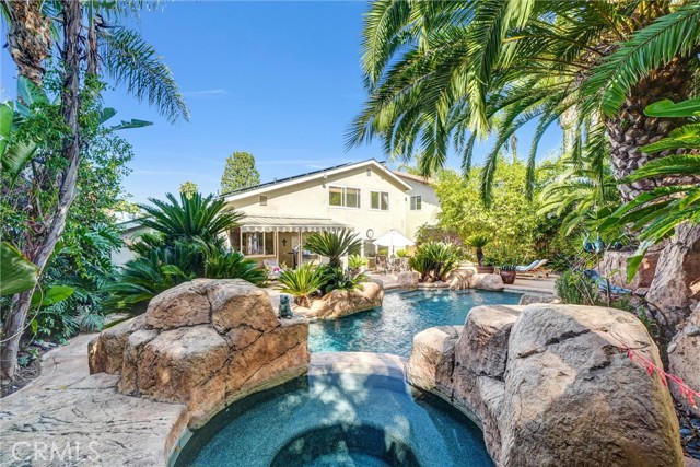 Where every day feels like a vacation! From the moment you walk through the front door, your eyes are drawn straight through the home to the backyard, sunlight pouring in through sliding glass doors and revealing a lush, resort-style oasis beyond. Step outside to a private tropical retreat featuring a sparkling pool, spa, cascading water features, and mature palms, creating a setting designed for both relaxation and entertaining. It’s a space that instantly feels like an escape. Back inside, vaulted ceilings elevate the main living area, where the first fireplace anchors a warm and inviting space filled with natural light. The kitchen blends function and style with granite countertops, stainless steel appliances, a wine fridge, and a sunny breakfast nook perfect for everyday living. A second fireplace adds character and comfort, creating multiple spaces to gather and unwind. This 3-bedroom, 2.5-bath home offers a comfortable, thoughtful layout, complemented by recent improvements, including a new roof, solar system, EV charging capability, and upgraded fixtures and finishes. Located in a friendly, well-established neighborhood with access to Lake Mission Viejo, residents enjoy beaches, boating, concerts, and year-round community events. Ideally situated near top-rated schools, scenic trails, parks, and convenient shopping and dining. This is the kind of home you don’t just live in, you truly enjoy.