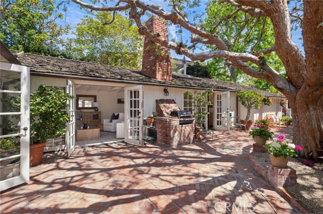 Step back to a simpler time and experience the timeless charm of this early California ranch-style bungalow, ideally located in the private bay and beach community of Bayshores. Originally built in 1952 and thoughtfully expanded in 1996, the home showcases open-beamed ceilings, warm oak floors, and beautiful bay windows that fill the interior with natural light. Set on a quiet and private corner lot, the property enjoys exceptional privacy along with bright, sunny exposures throughout the day. Multiple sets of French doors open to a serene brick wraparound patio, where mature trees provide a natural canopy of shade—creating an inviting setting for effortless indoor-outdoor living and entertaining. The second-level primary suite offers a peaceful retreat and is accessible by both a traditional staircase and a private elevator. This inviting space includes a comfortable sitting area you may never want to leave, a spacious bathroom with separate tub and shower, and a generous walk-in closet. On the main level, the third bedroom is currently configured as a home office/den but could easily be converted back to a bedroom with minor modifications. The kitchen opens to the great room and adjacent dining room, creating an ideal layout for everyday living and gatherings, and includes a convenient walk-in pantry. Additional features include dual air conditioning units and a well-equipped garage accommodating two cars plus a golf cart, with extensive built-ins and a dedicated laundry area. This is a trust sale. The trustee is also the listing agent and is related to seller. Please submit offers by 9 am May 01,2026; offers will reviewed on that date.